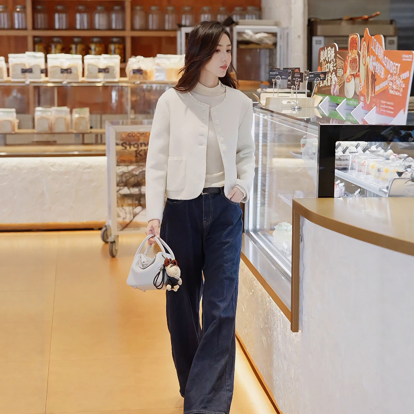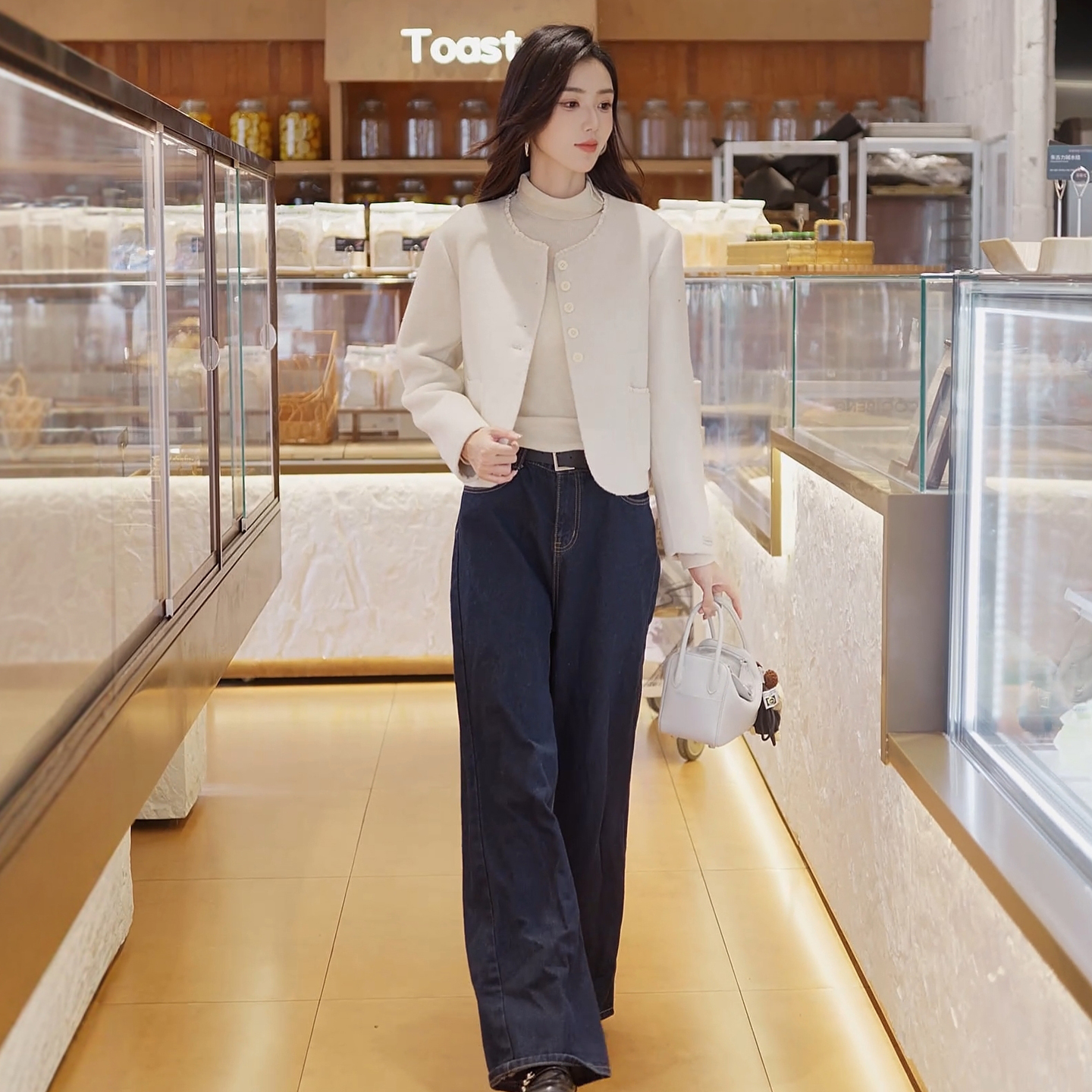 BM小香风花边领圆领双面羊毛呢外套名媛气质小个子短款呢子外套女
