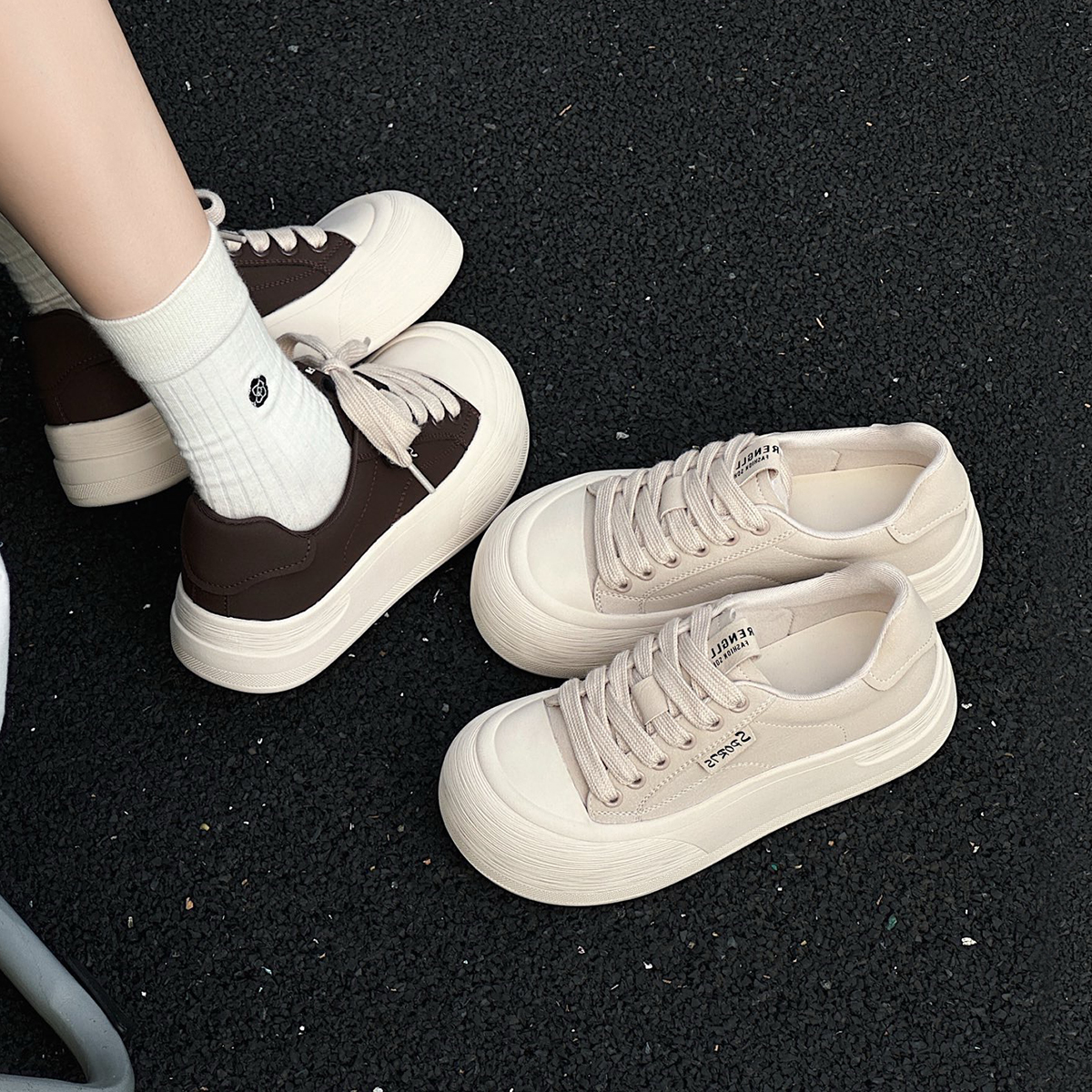 有单有绒【运费险三包】减龄娃娃头增高厚底小白鞋女真皮板鞋2025
