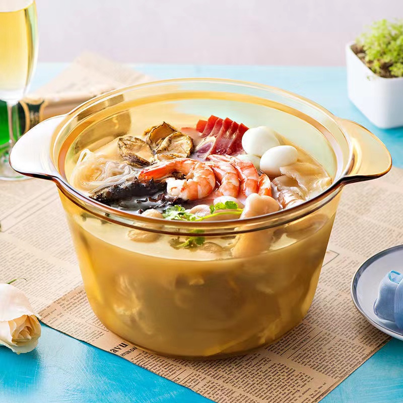 康宁晶彩锅玻璃锅养生锅3.8L 5.5L汤锅炖煲耐高温明火直烧康宁锅