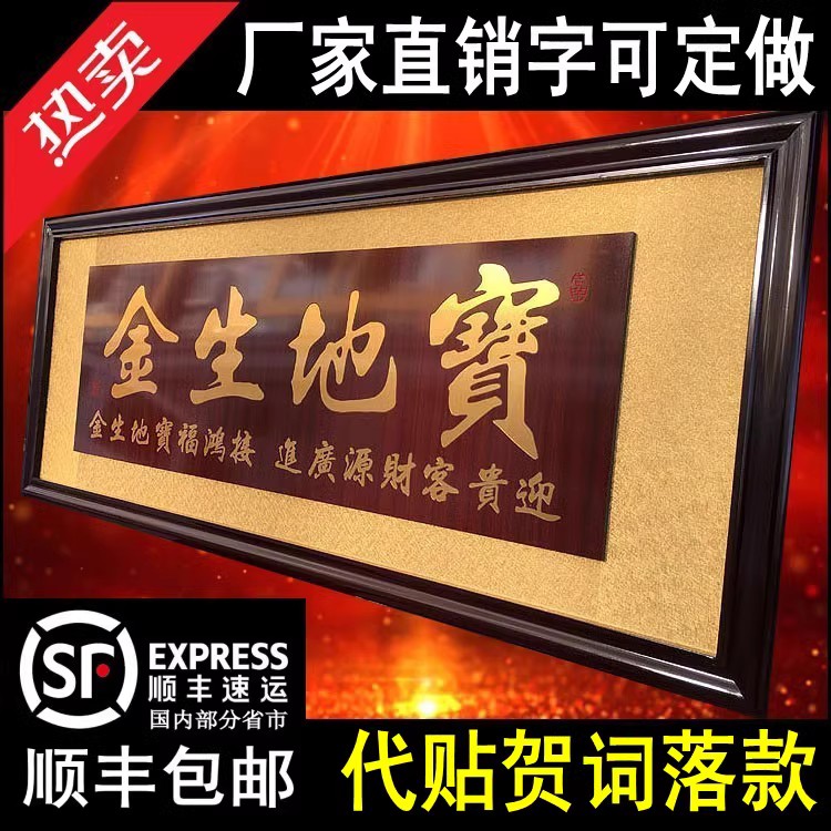 公司开业牌匾宝地生金木雕雕刻贺匾饭店饭厅开张宾馆前台店铺匾额