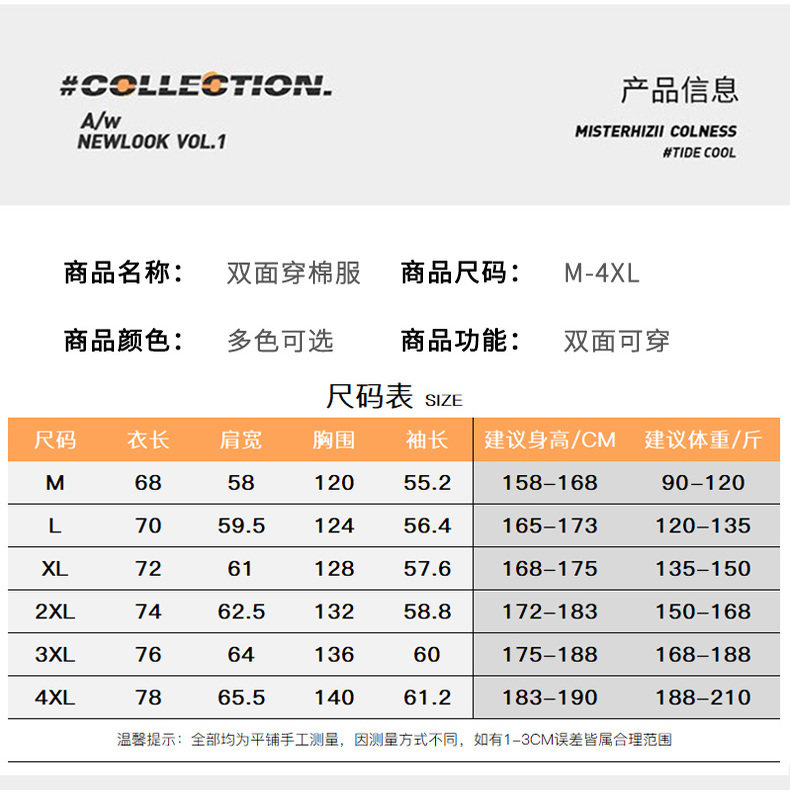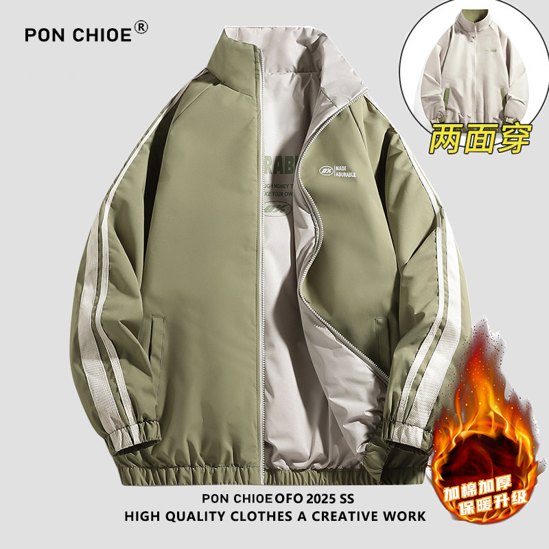 ponchioe立领冬季加棉加厚保暖双面穿夹克棉衣外套百搭青年外套