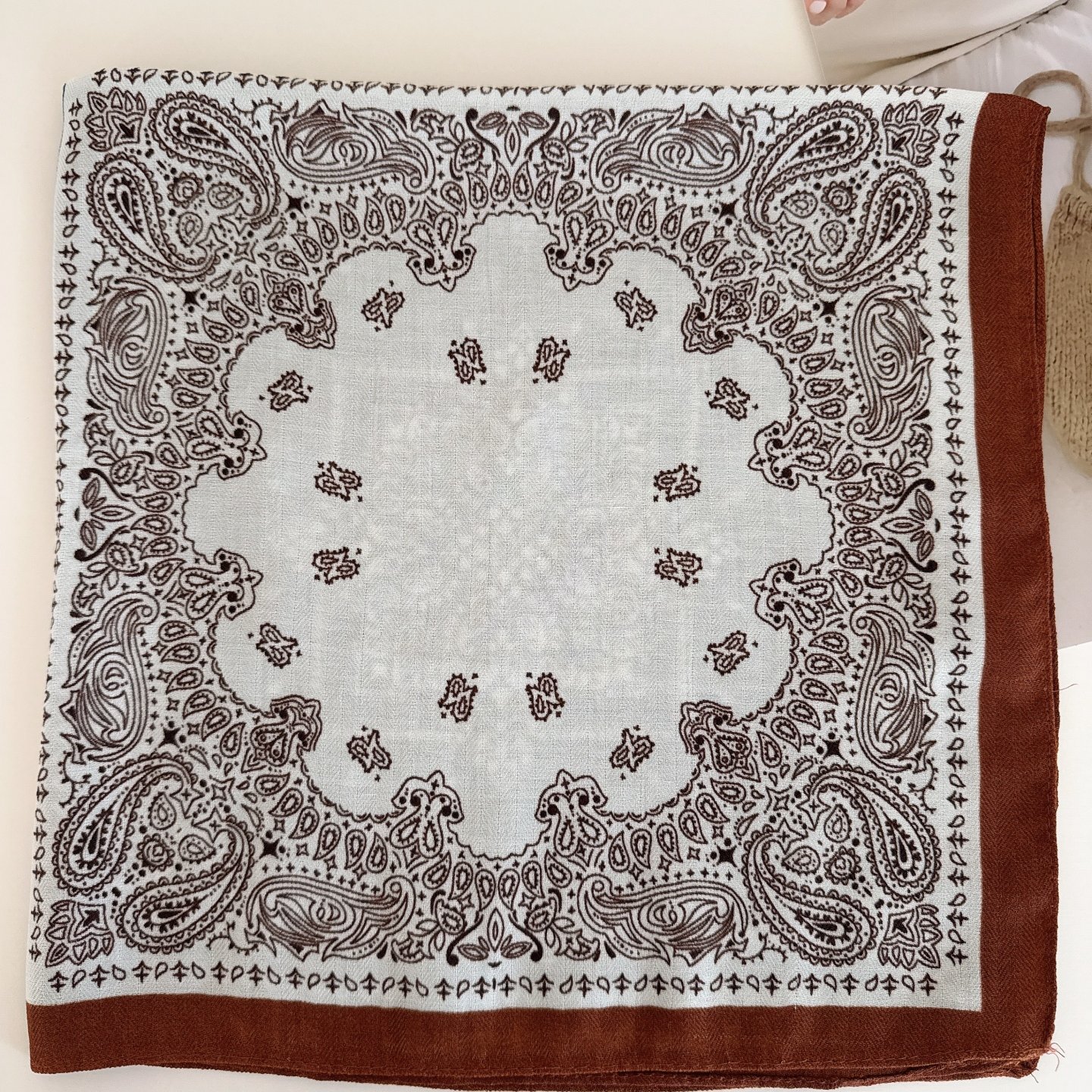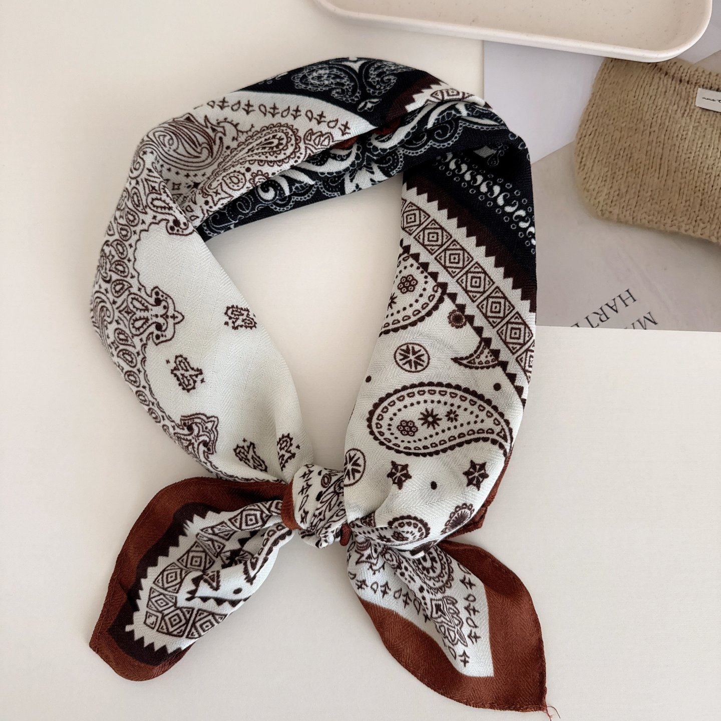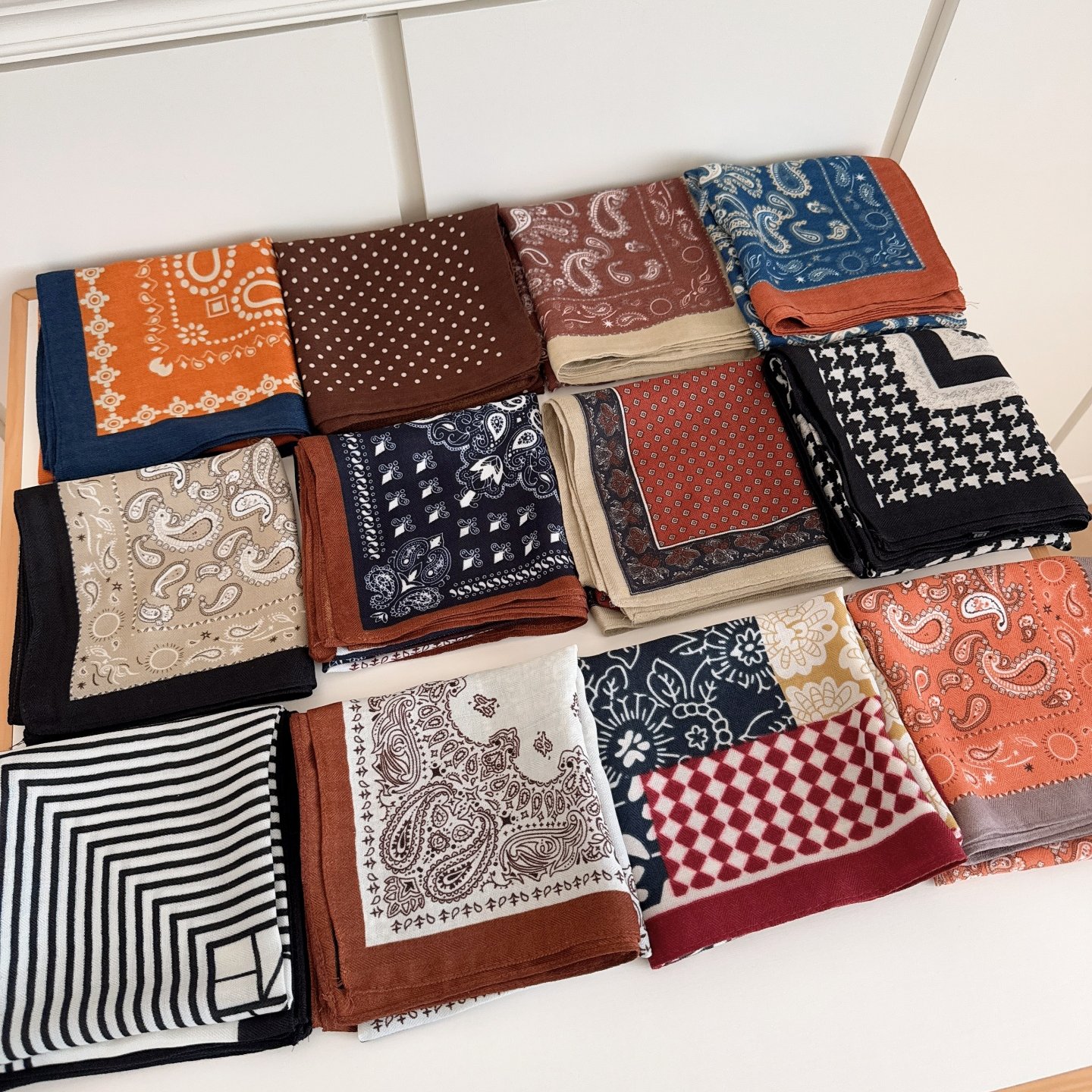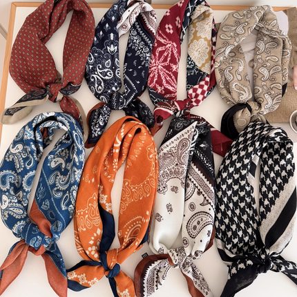 秋冬新款复古腰果格子条纹棉麻手感小方巾丝巾围巾领巾绑腰包头用