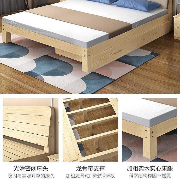 实木床1.8米松木双人床1.5米经济型成人现代简约简易1mm单人床架