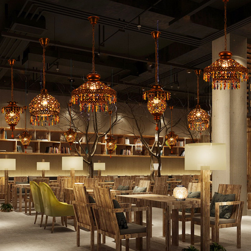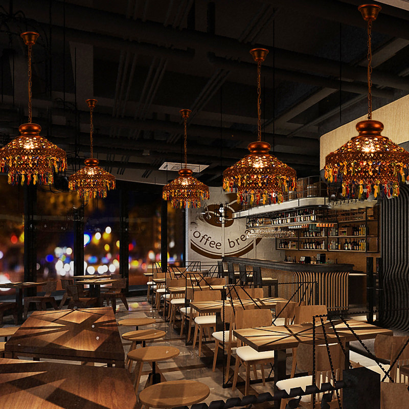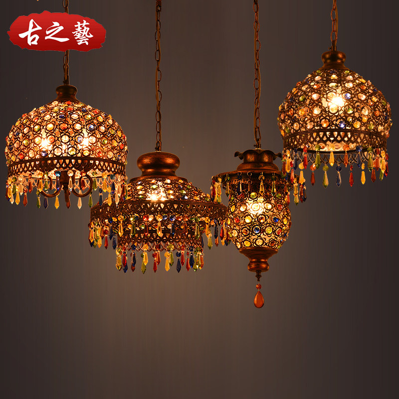 漫咖啡 东南亚泰式风格彩色水晶吧台吊灯地中海波西米亚灯