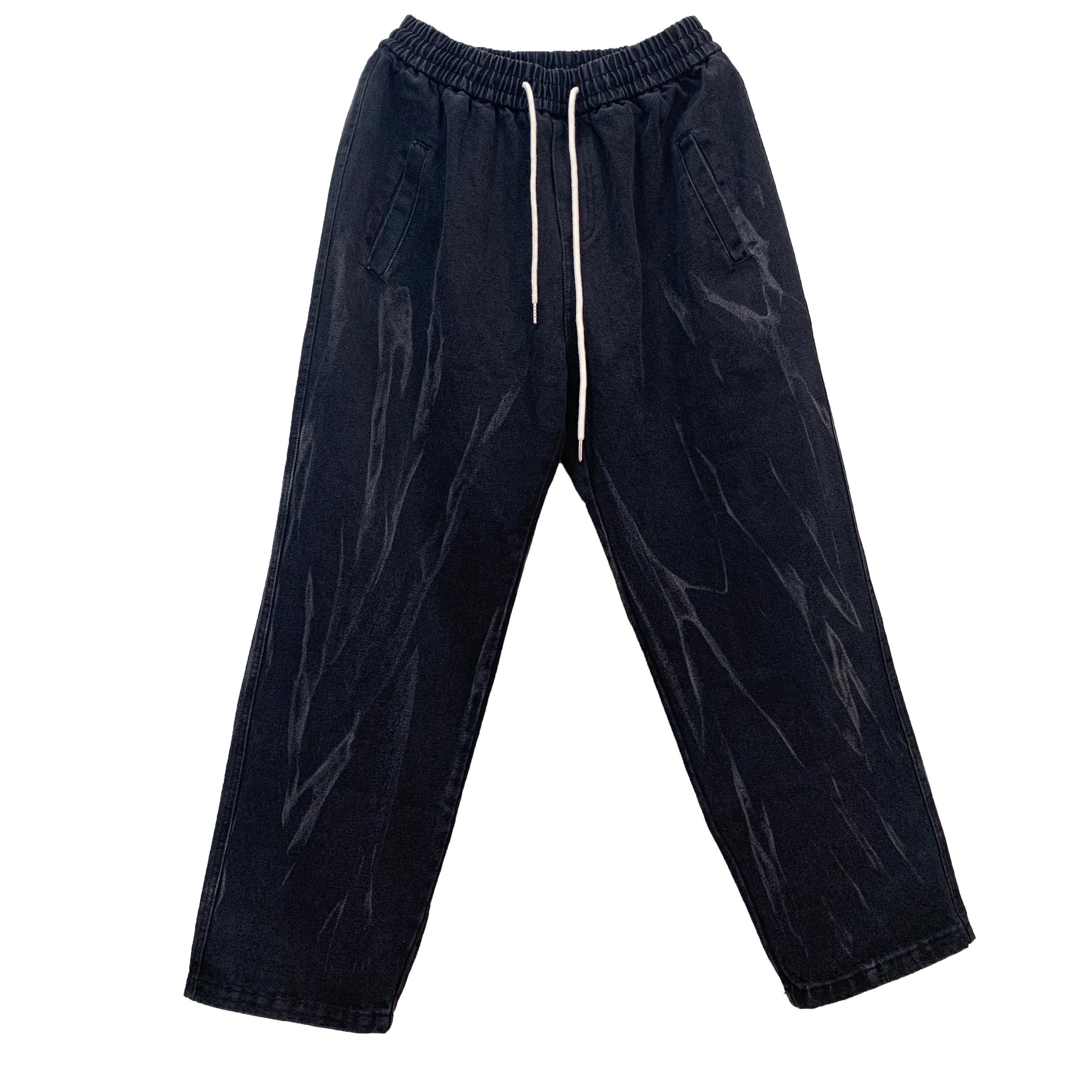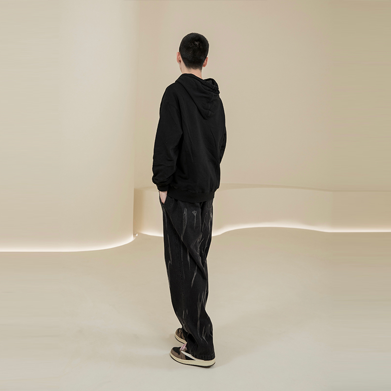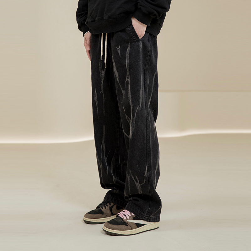烦恼的Octopusl潮牌美式做旧水洗牛仔裤复古宽松直筒休闲长裤子男