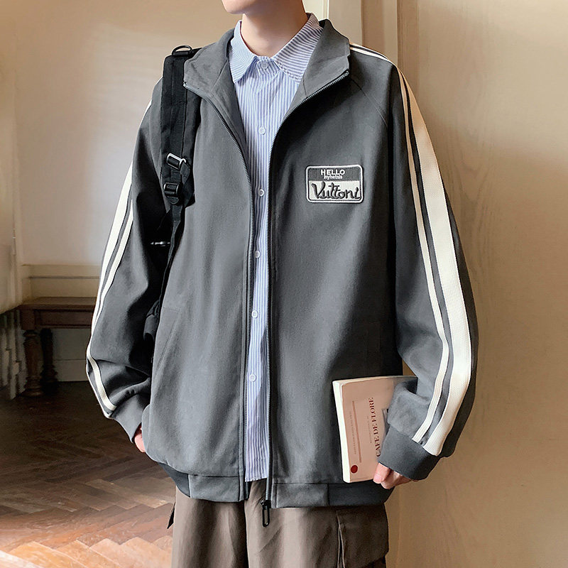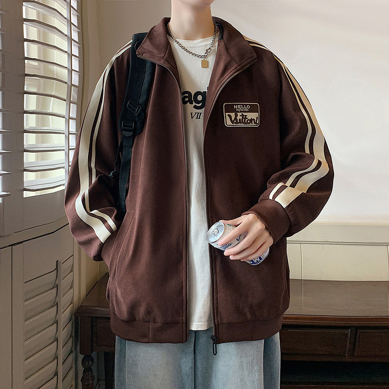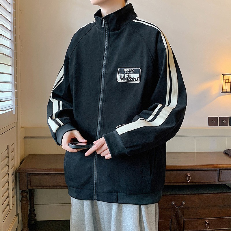 美式立领夹克男款2026春秋季潮牌宽松运动拼接外套休闲上衣服以純