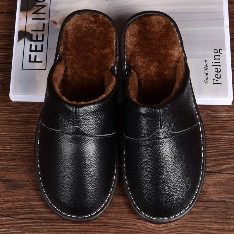 【头层牛皮】真皮拖鞋男女情侣居家室内家用冬季防滑保暖棉拖鞋