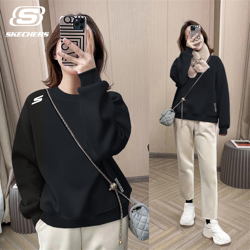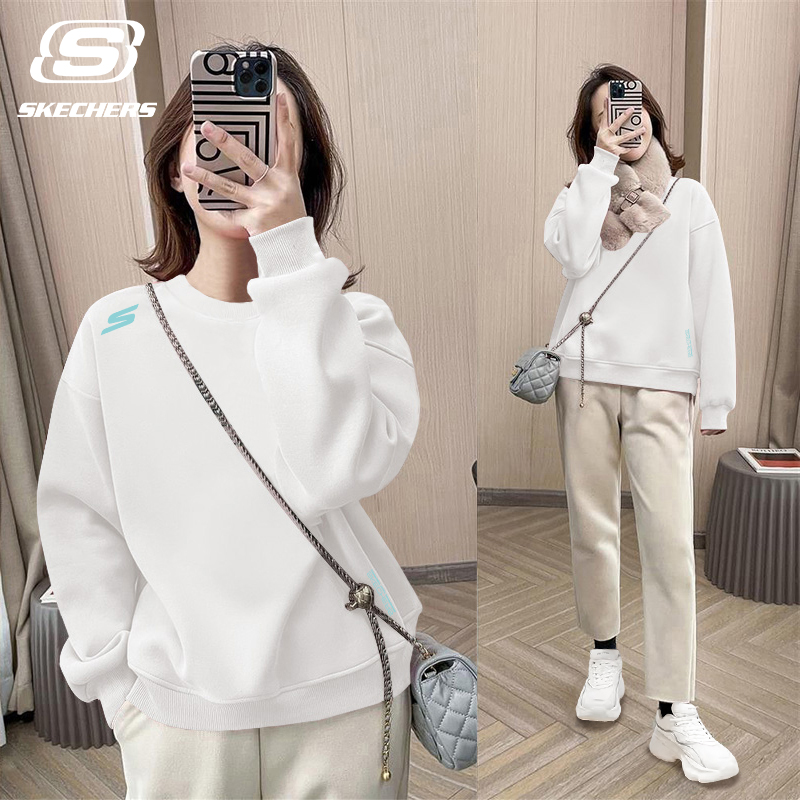斯凯奇加绒卫衣女秋季新品运动休闲针织长袖今年流行纯色字母上衣