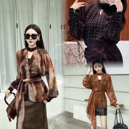 欧货正品2025秋冬新款时尚百搭显瘦宽松气质高雅长袖飘带衬衫女潮