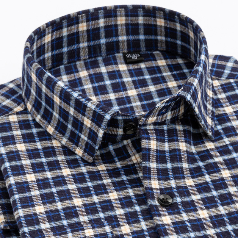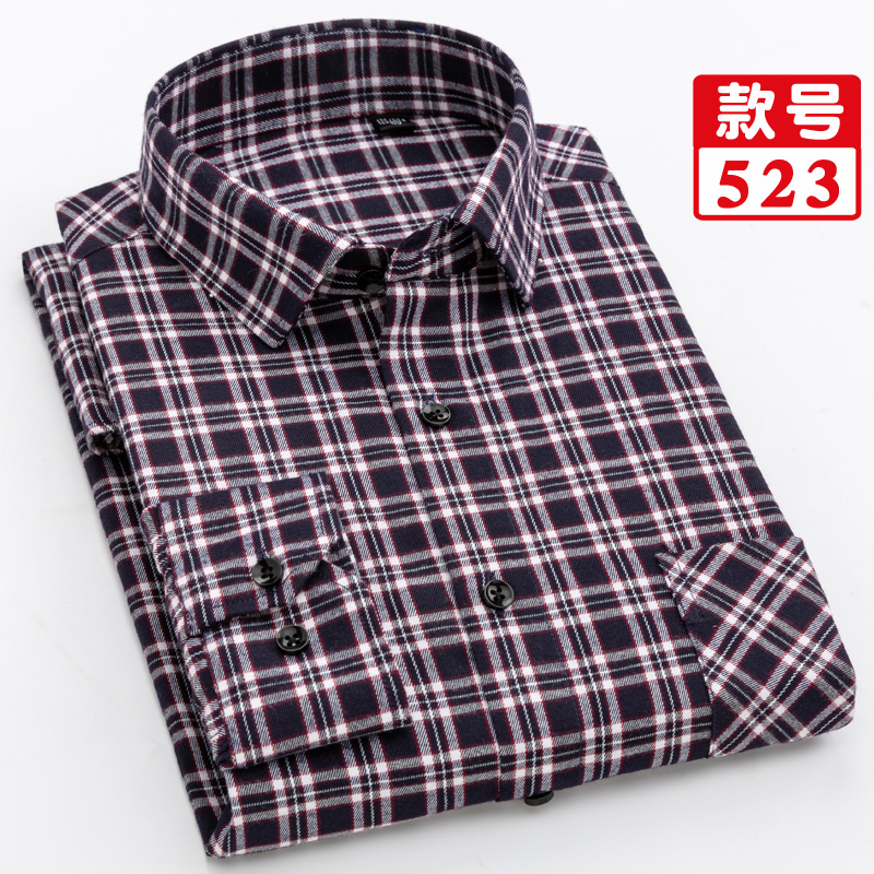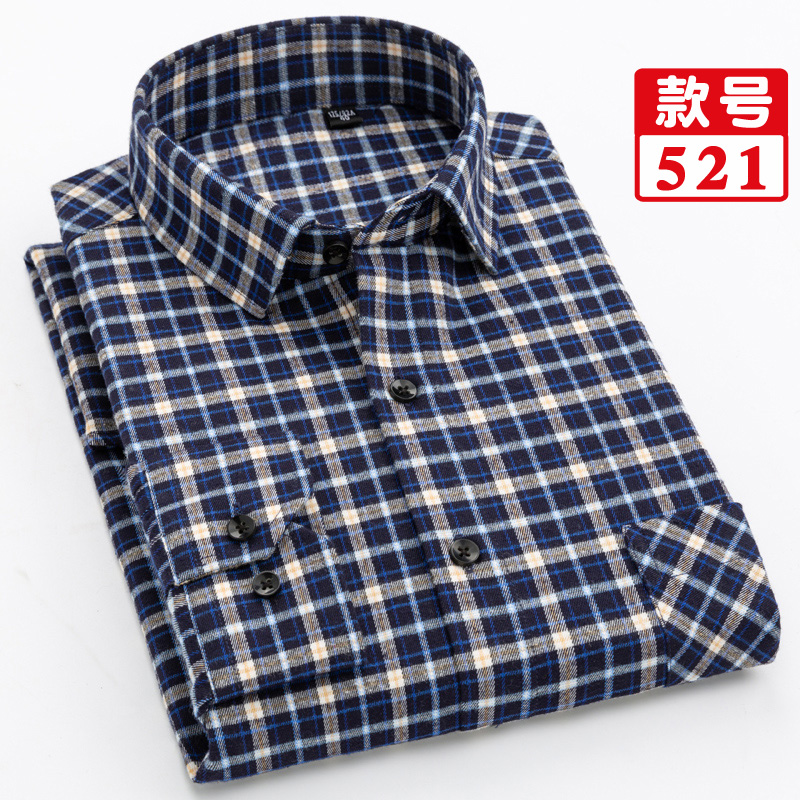 秋季纯棉格子衬衫男长袖中年爸爸男式衫衣中老年人男士老人棉衬衣