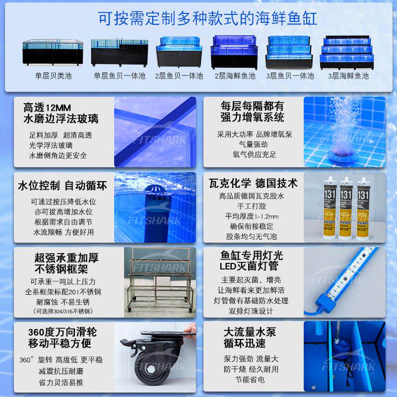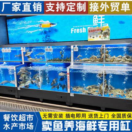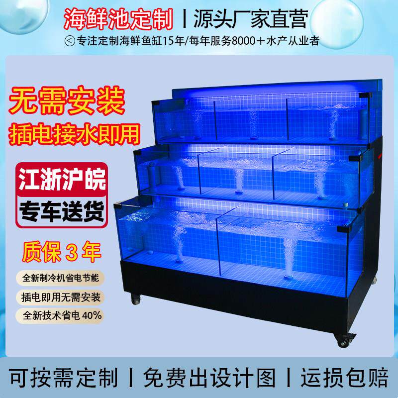海鲜池商用制冷机一体超市鱼缸定制饭店专用鱼池移动海鲜缸贝类池