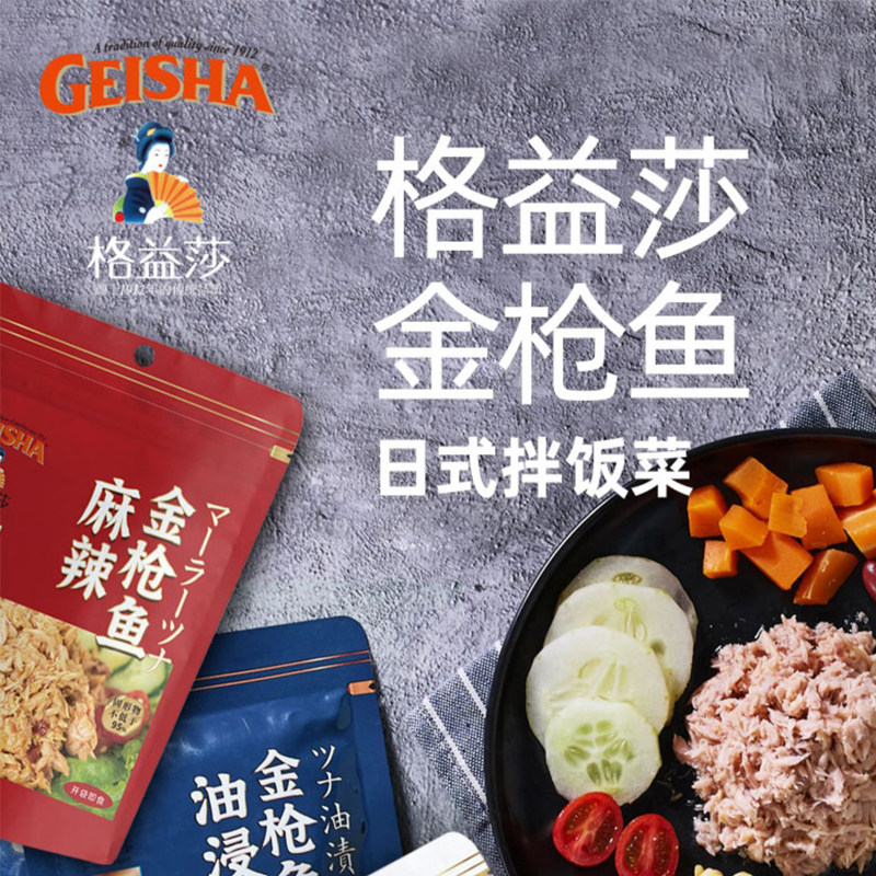 Geisha格益莎金枪鱼油浸罐头进口即食沙拉寿司吞拿鱼海鲜100g*3袋