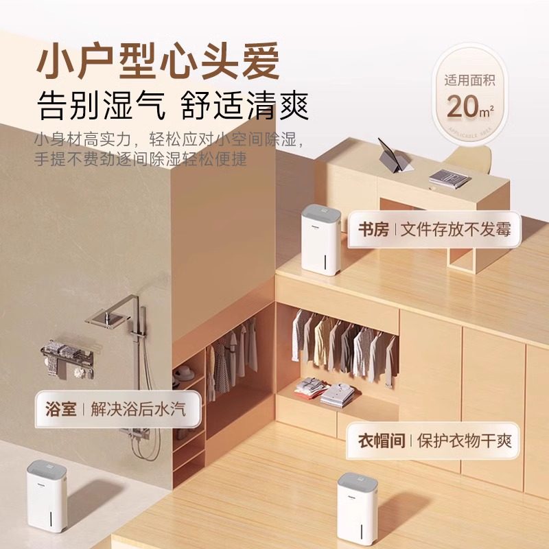 松下除湿机家用F-16C3YC小型静音抽湿卧室除潮干燥器干衣节能抑菌