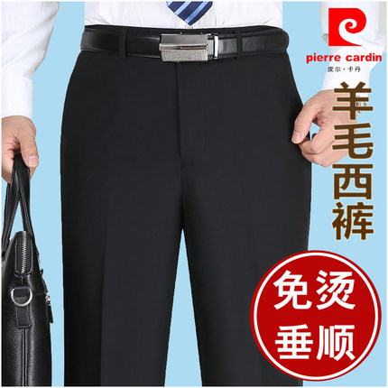 皮尔卡丹垂顺西裤中年羊毛直筒厚