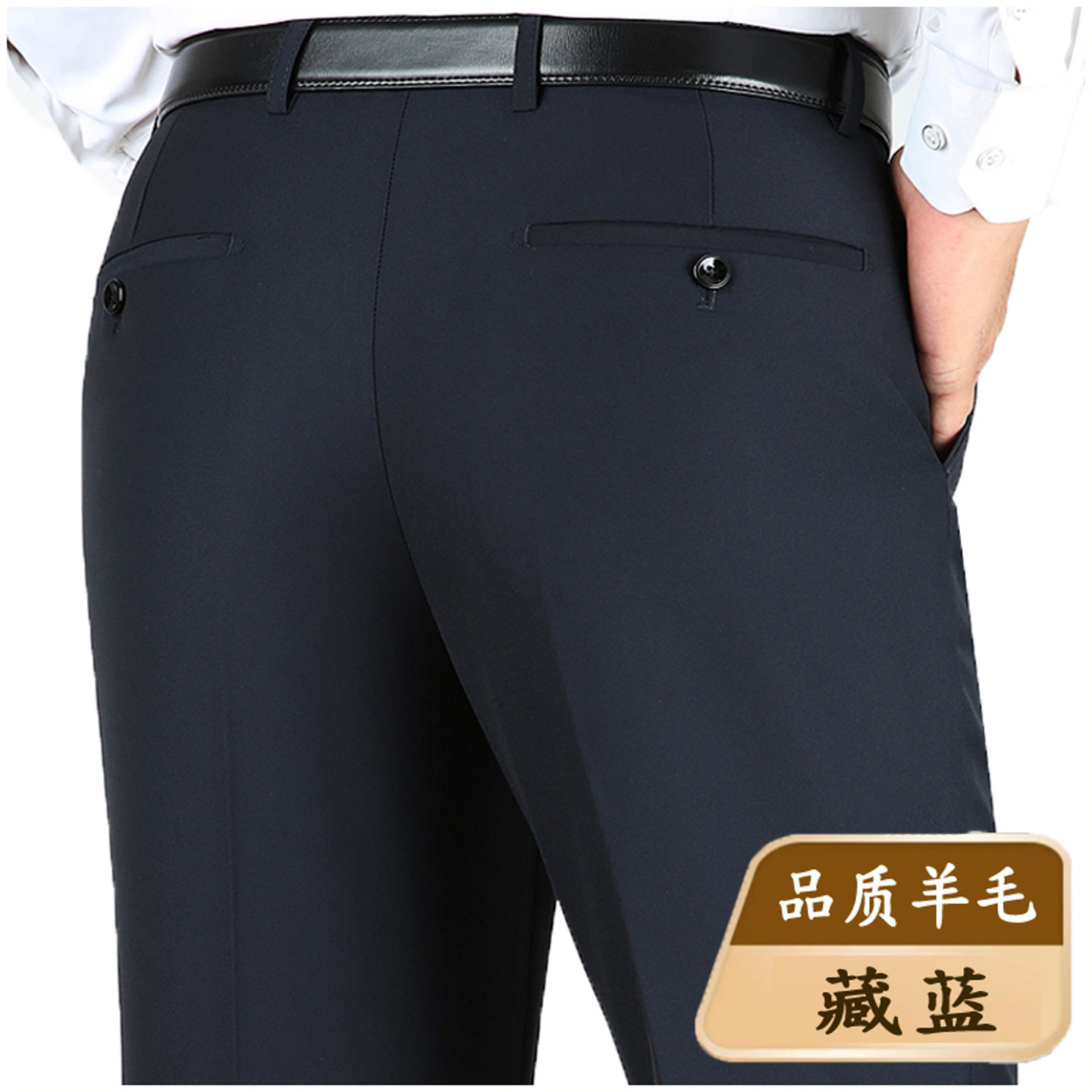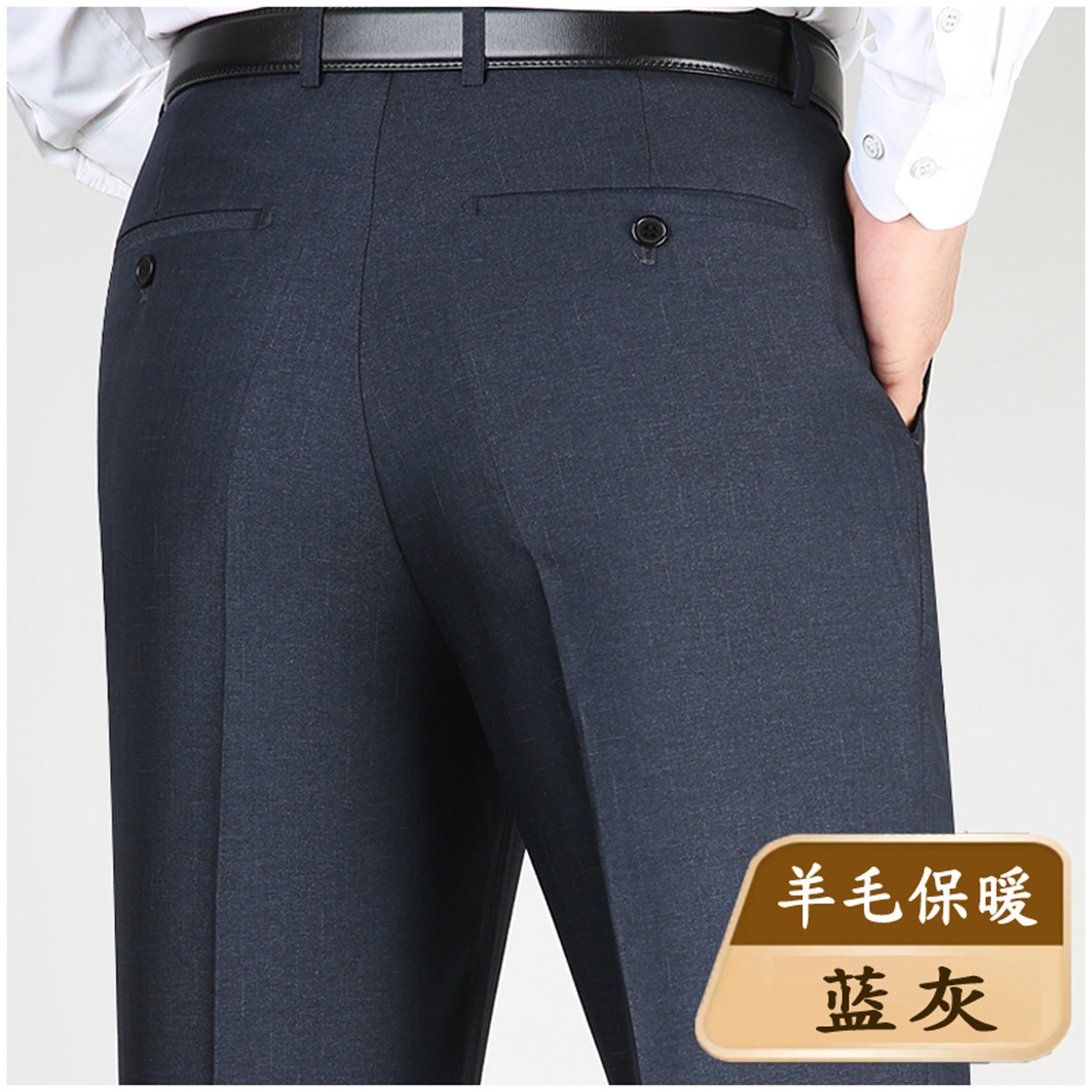 皮尔卡丹男士西裤中年商务正装男裤宽松直筒羊毛垂顺免烫西装裤厚