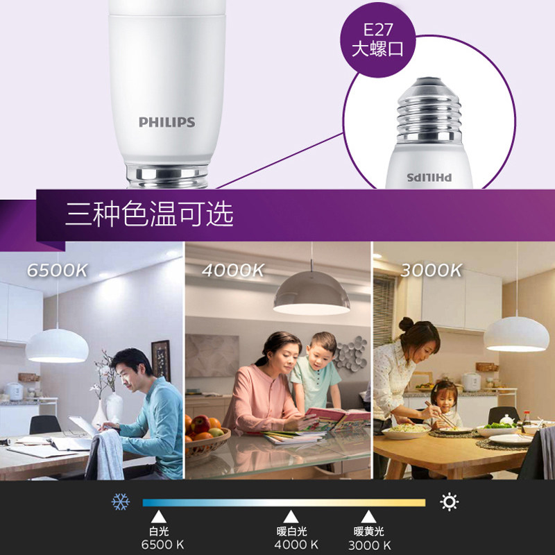 飞利浦led节能灯泡e27大螺口家用超亮照明吊灯台灯筒灯玉米小柱灯