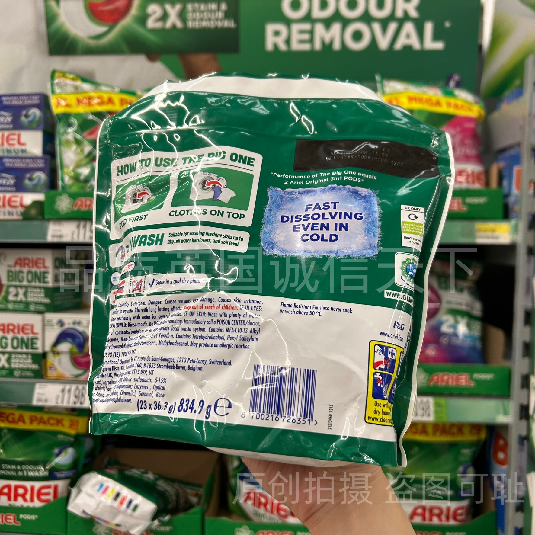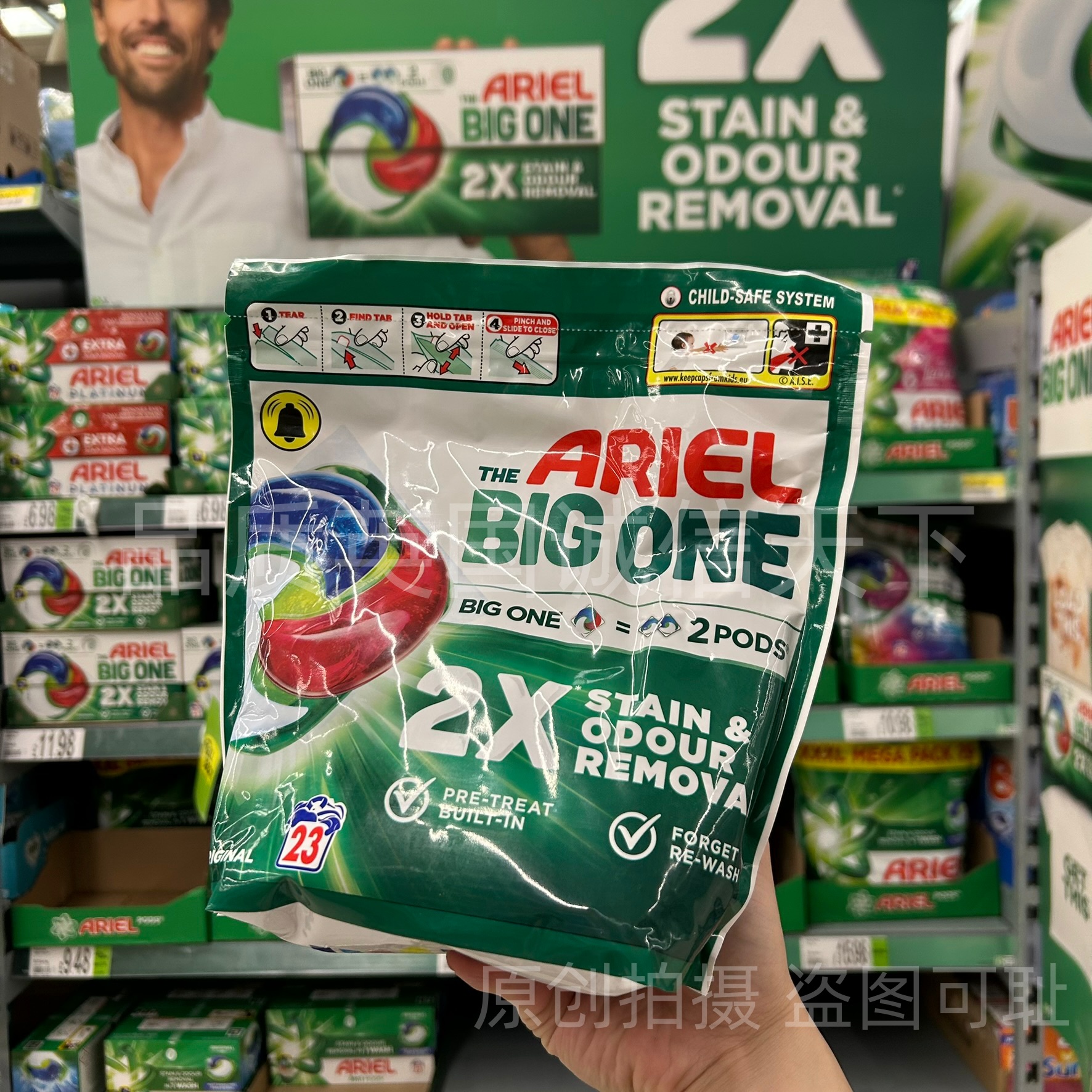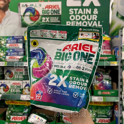 英国进口Ariel碧浪洗衣凝珠THE BIG ONE大颗装双倍去污渍护色23粒