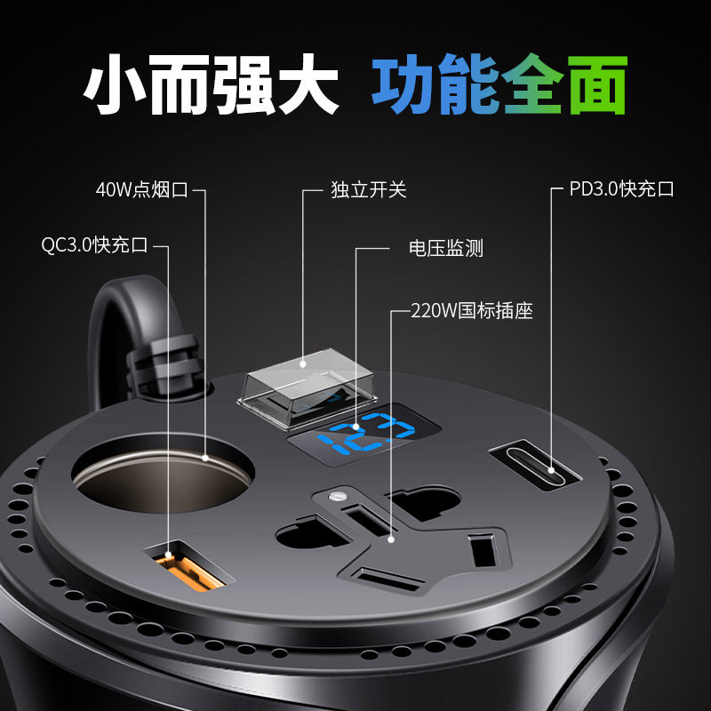 杯式车载逆变转换器车用多功能快充汽车12V转220v电源插座充电器