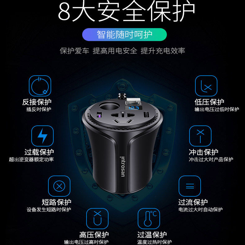 爱兰车载逆变器小型杯型快速充电