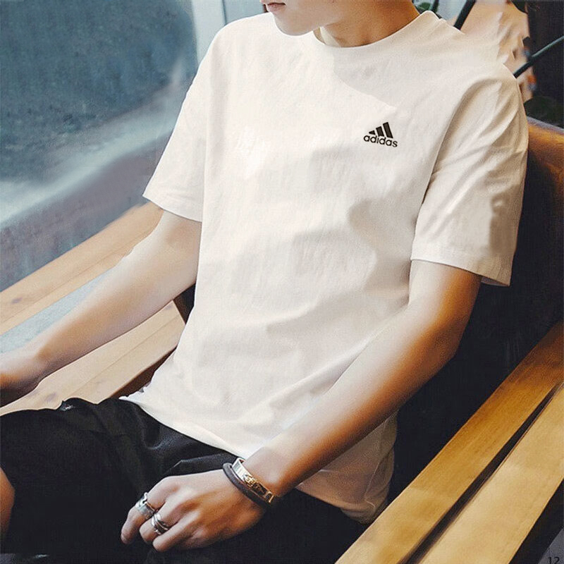 阿迪达斯短袖男装夏季新款纯棉针织透气上衣男士宽松休闲运动T恤