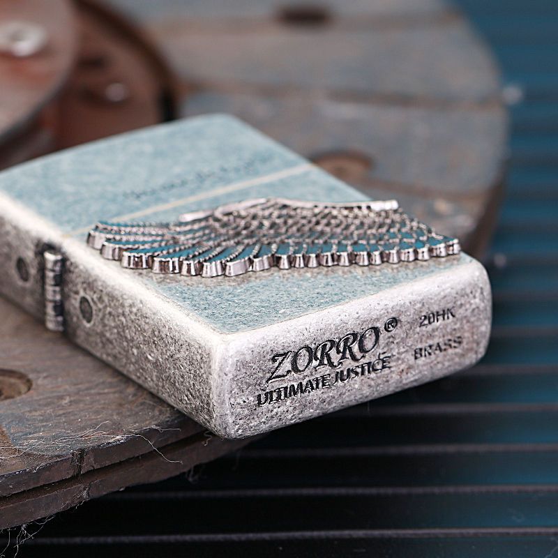 ZORRO佐罗正品纯铜砂轮防风煤油打火机定制飞得更天使之翼翅膀礼