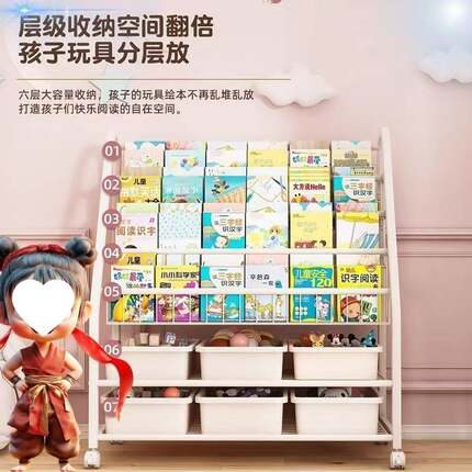 儿童书架玩具收纳架可移动多层分类收纳架简易落地多层铁艺杂志架