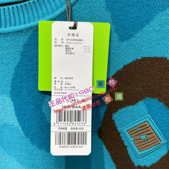 ASEEC4305C7太平鸟女装国内代购2022冬SPCN字母线套衫ASEEC4301C7