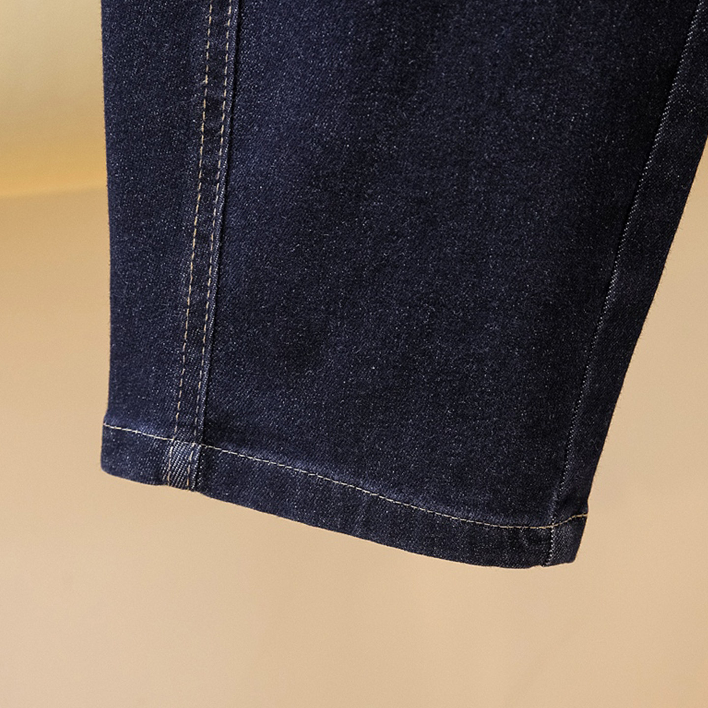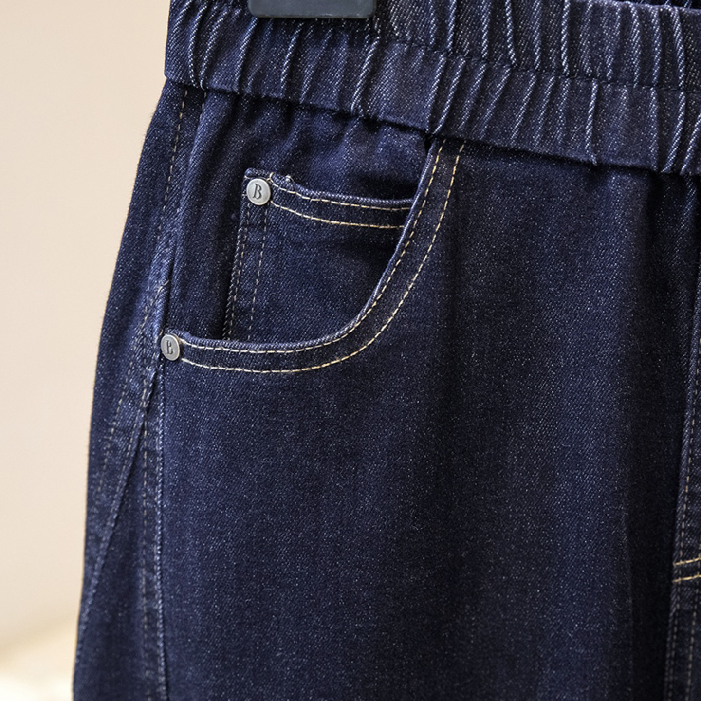 大码明线设计感感松紧腰牛仔裤秋