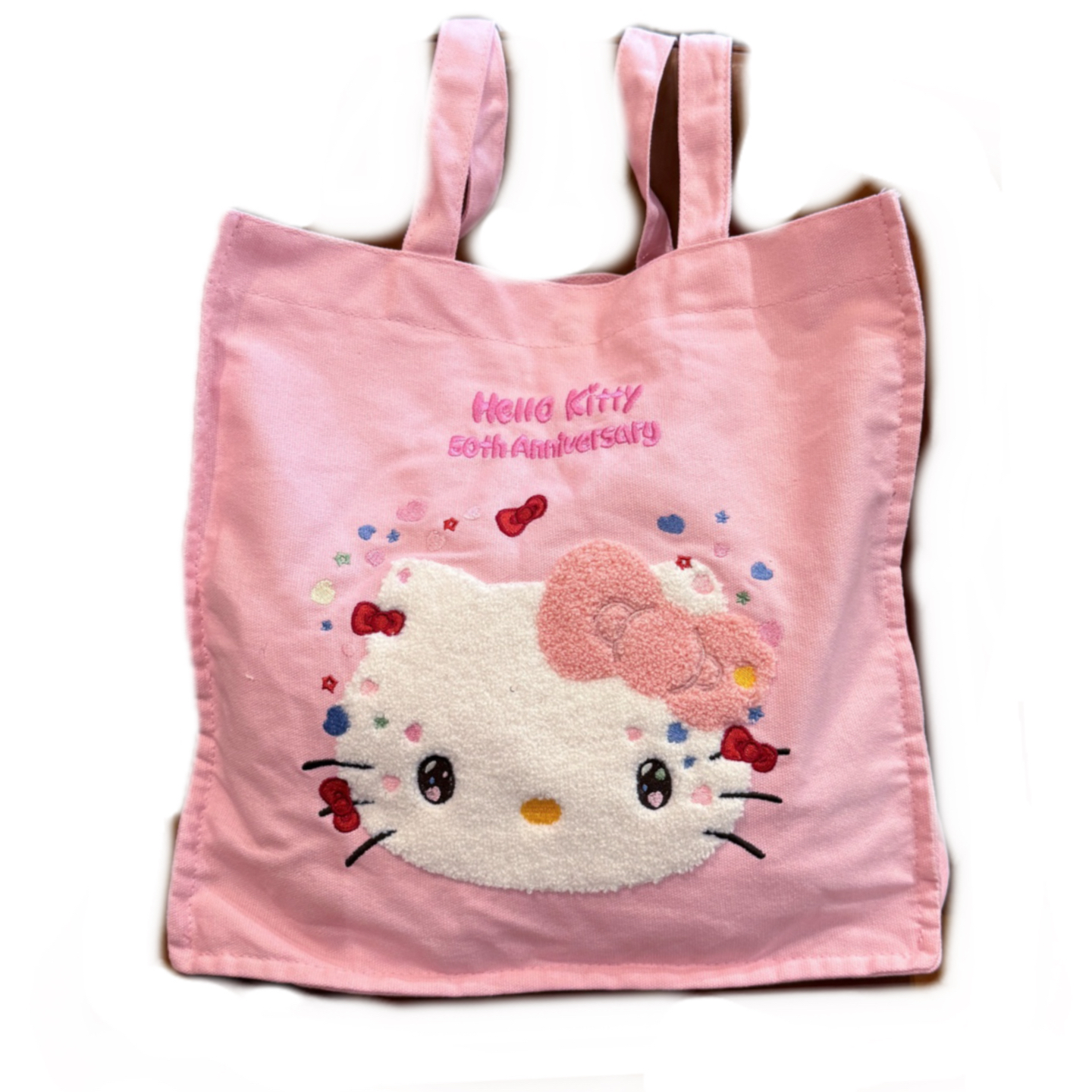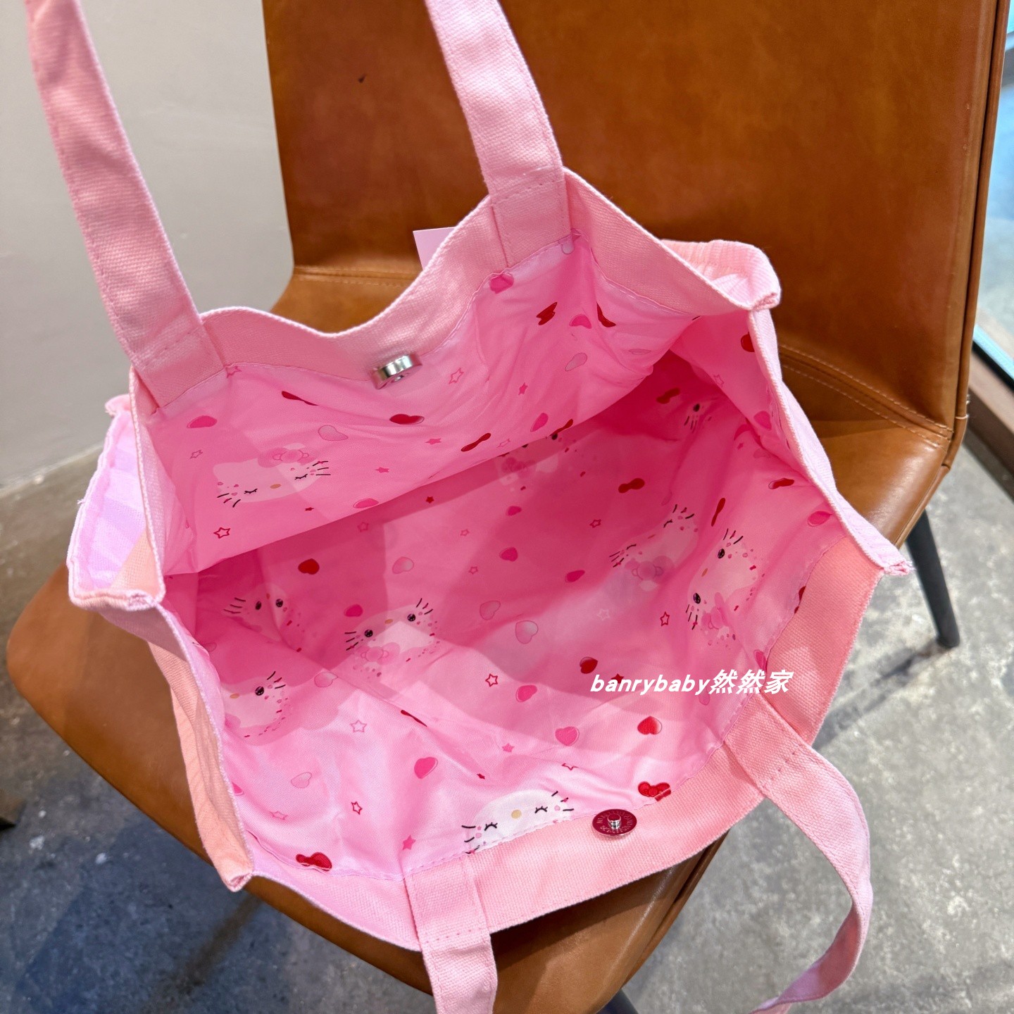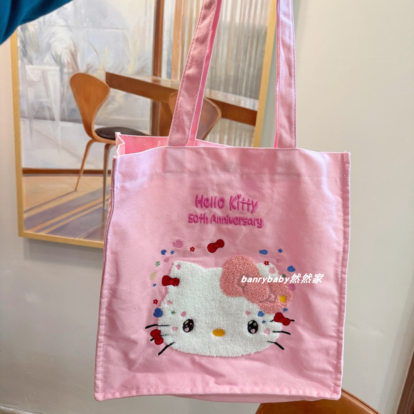 日系可爱kitty刺绣帆布包粉色少女心大容量手提单肩包学生补习袋
