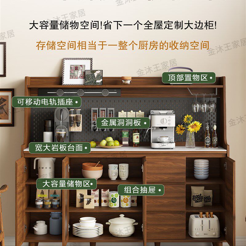 实木餐边柜靠墙一体储物柜客厅茶水柜酒柜2025新款小户型厨房橱柜