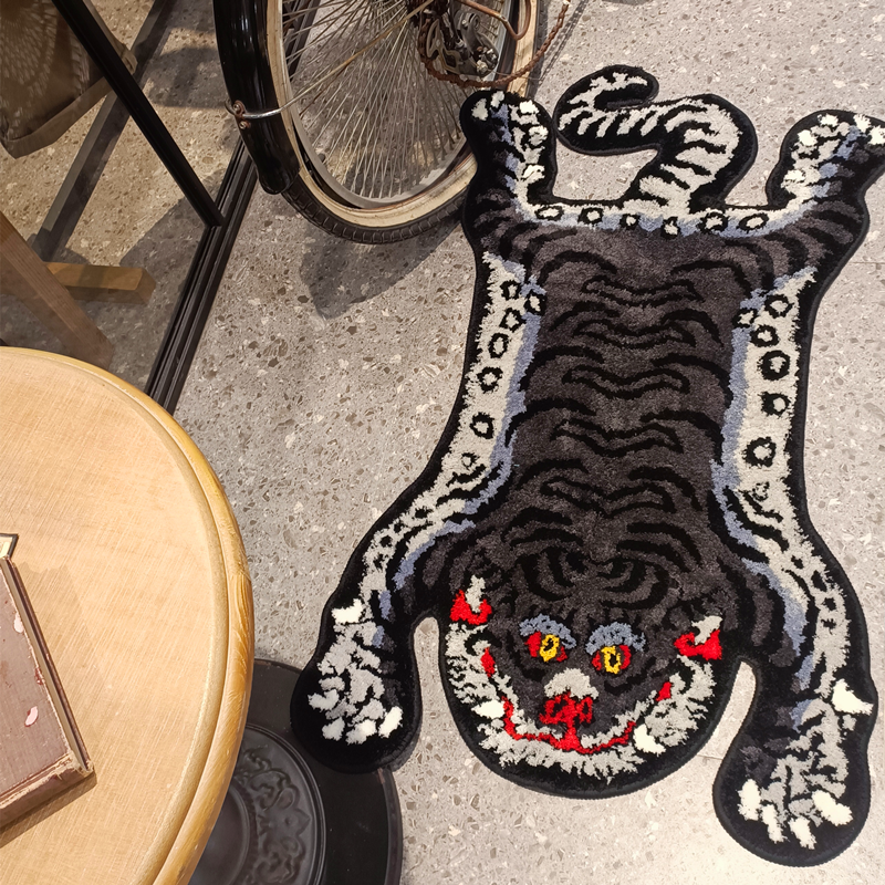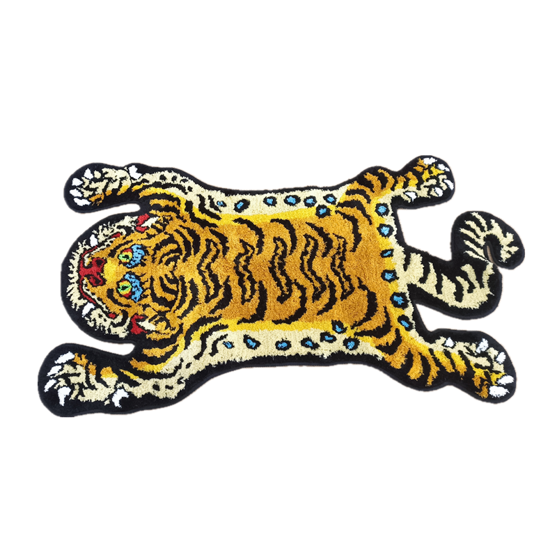 Tufting西藏镇宅虎毯老虎地毯 客厅卧室异形地垫床边毯多彩龙挂毯