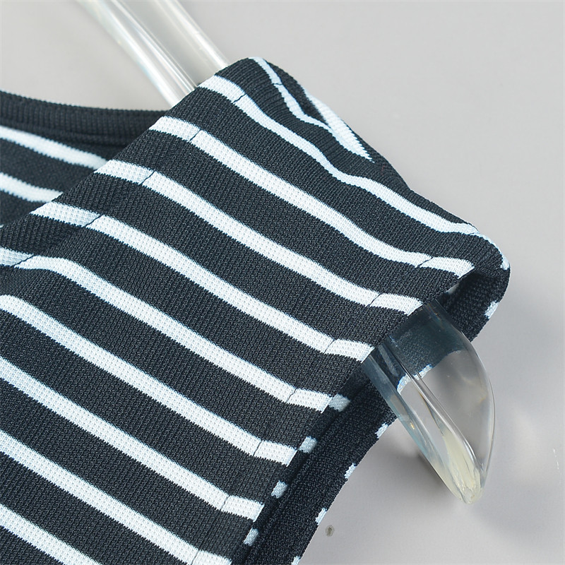 捡漏剪镖精品条纹拼接无袖连衣裙女L84800夏秋修身高腰一步中长裙