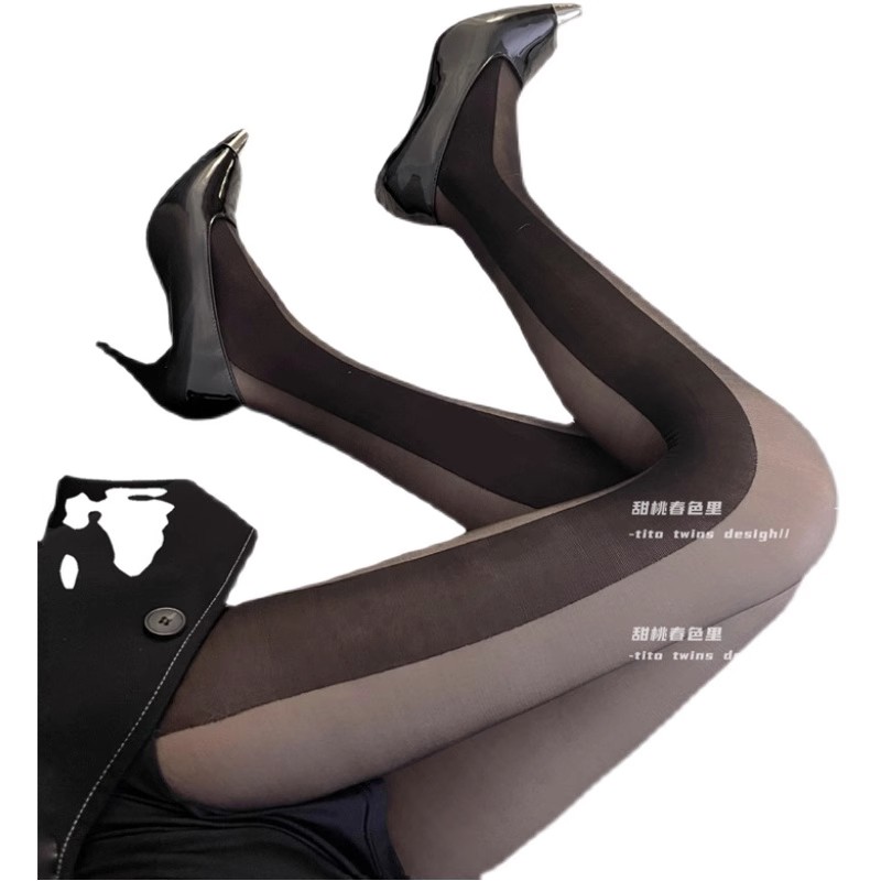 黑丝袜女性感显瘦侧竖条纹黑色拼接连裤袜子秋季薄款ins潮打底袜