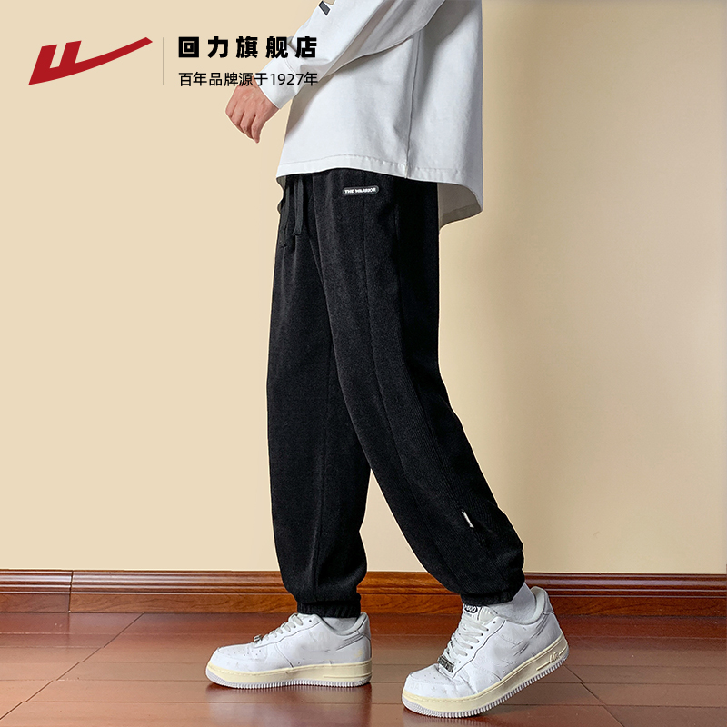 回力男士裤子2025春秋季新款灯芯绒休闲长裤束脚加绒加厚运动卫裤