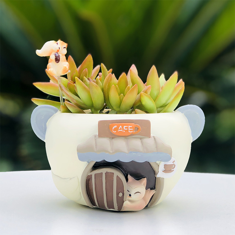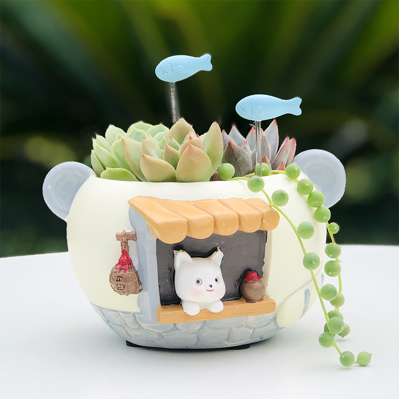多肉可爱精致小动物花盆猫咪狐狸造型幼儿园儿童小盆栽易活微景观