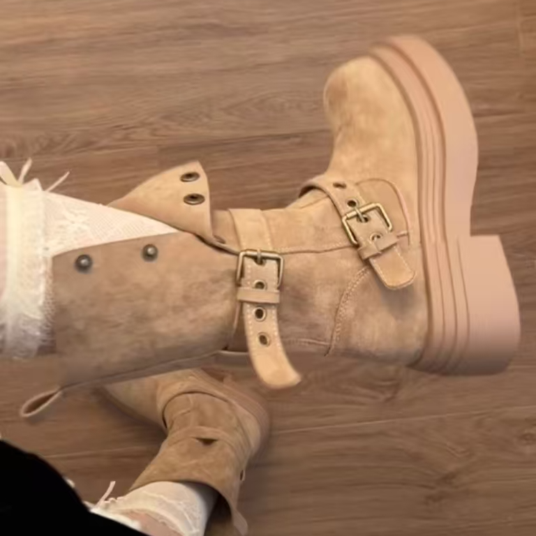 小个子增高厚底短靴女2025年春季新款复古时尚百搭显瘦马丁短靴子
