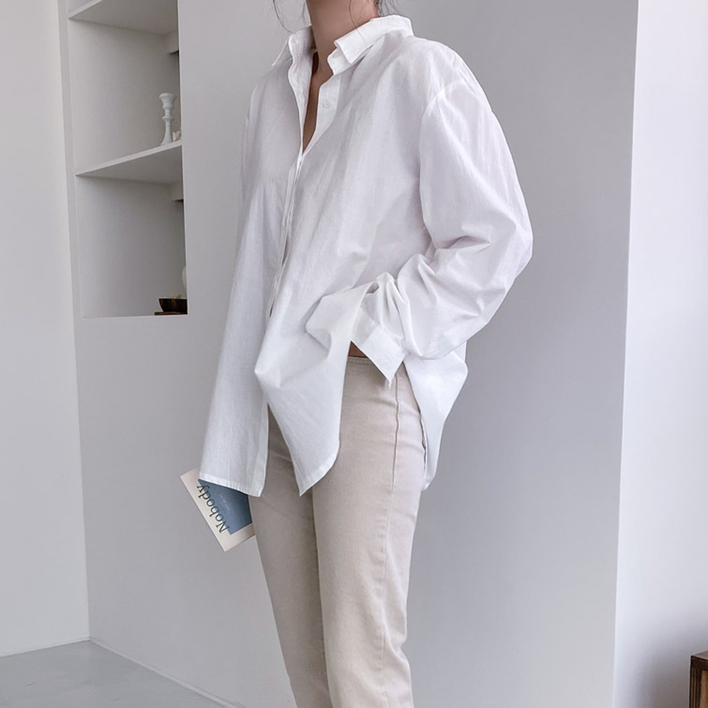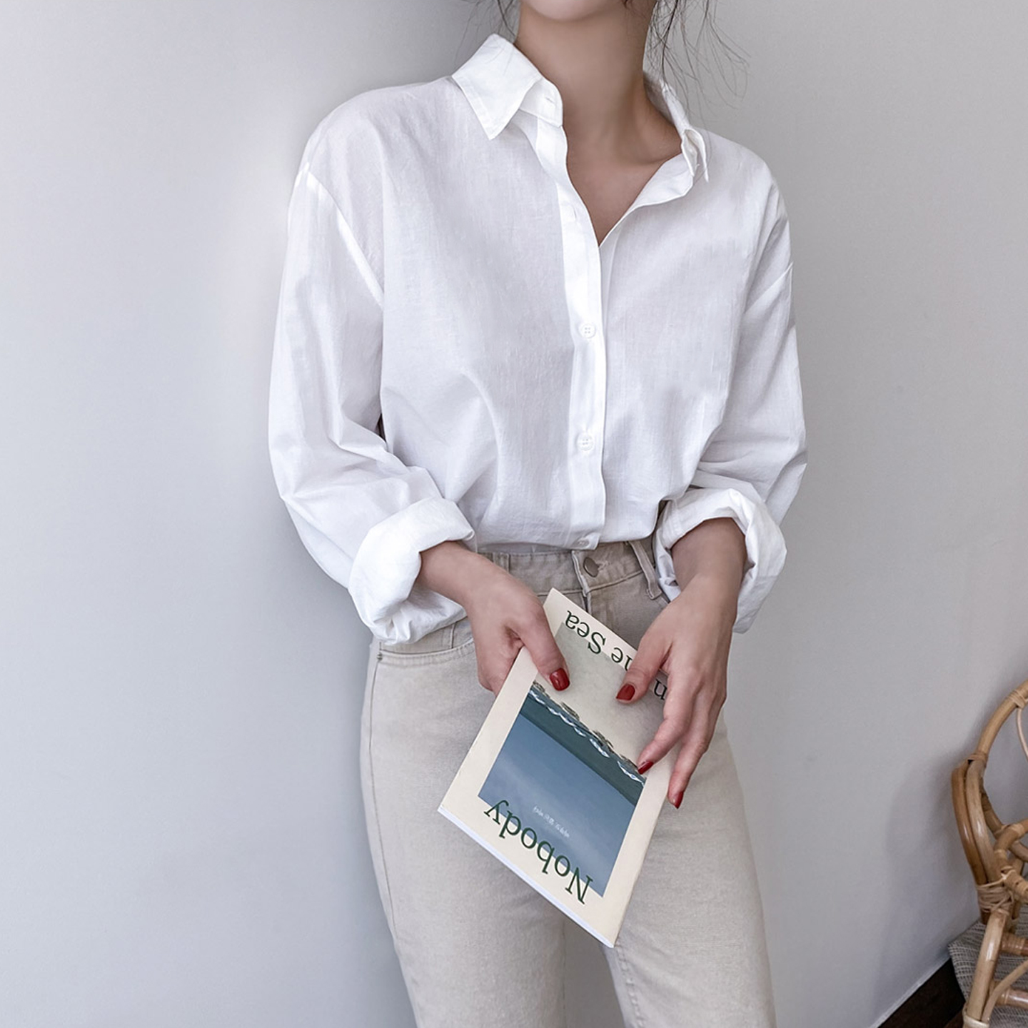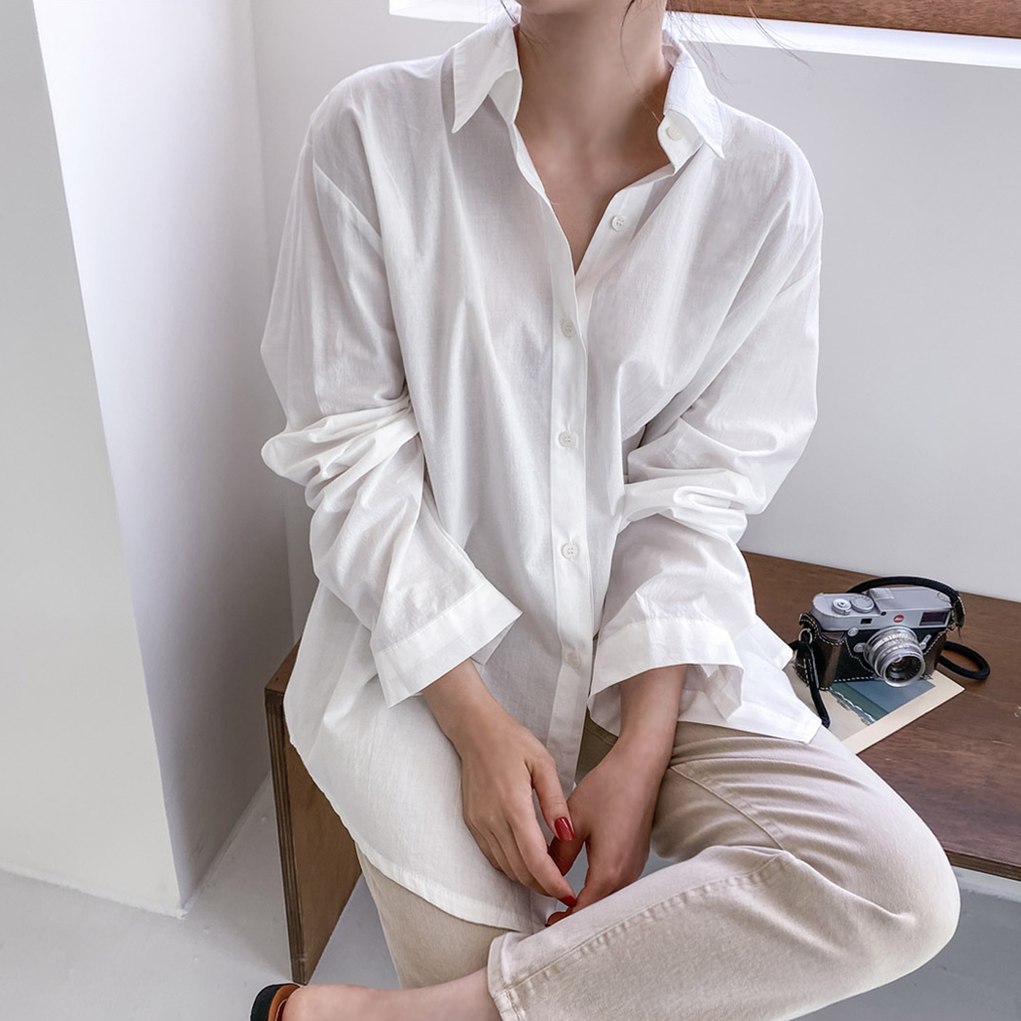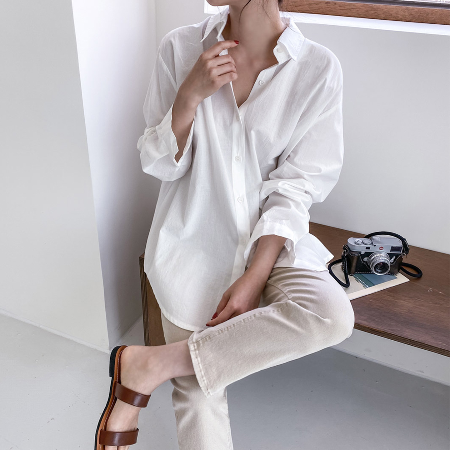 莱赛尔天丝棉白色衬衫女宽松韩版显瘦新款衬衣休闲风通勤百搭打底