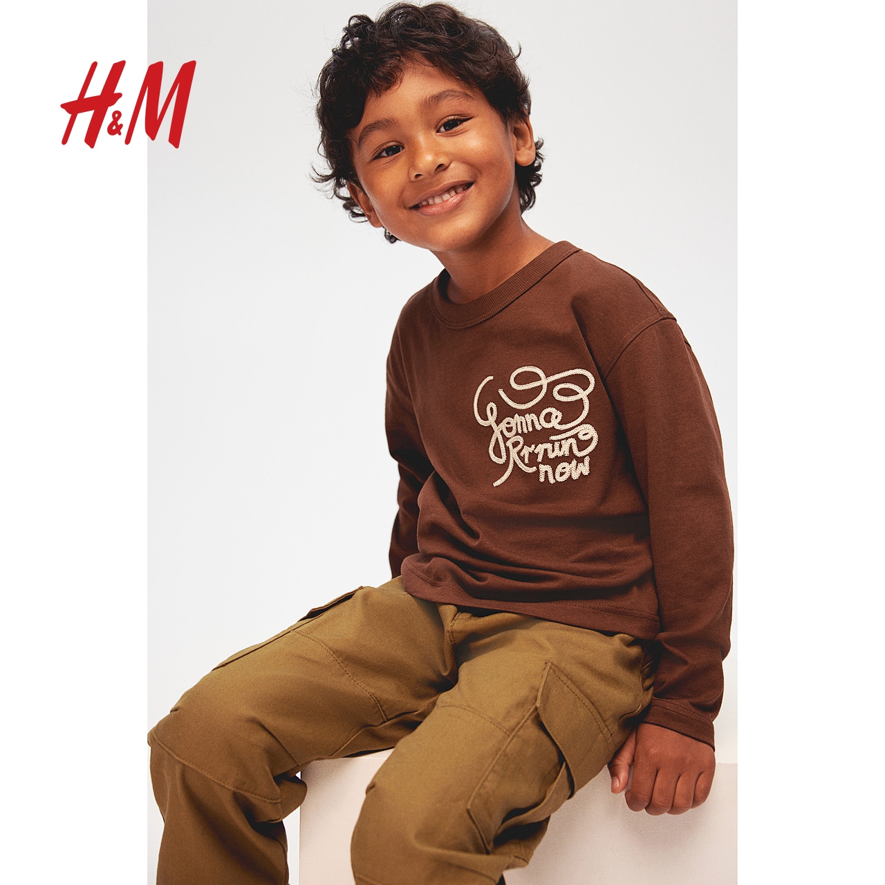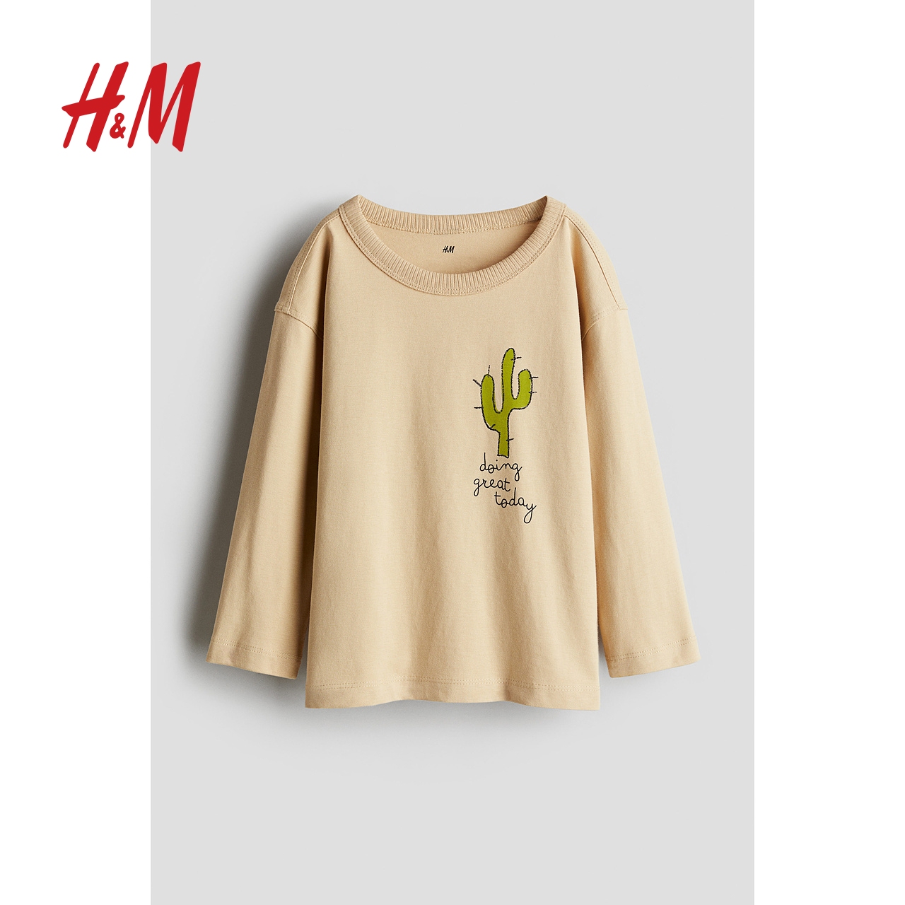 HM童装男童女童T恤秋季新款休闲风时尚舒适简约长袖T恤1243937