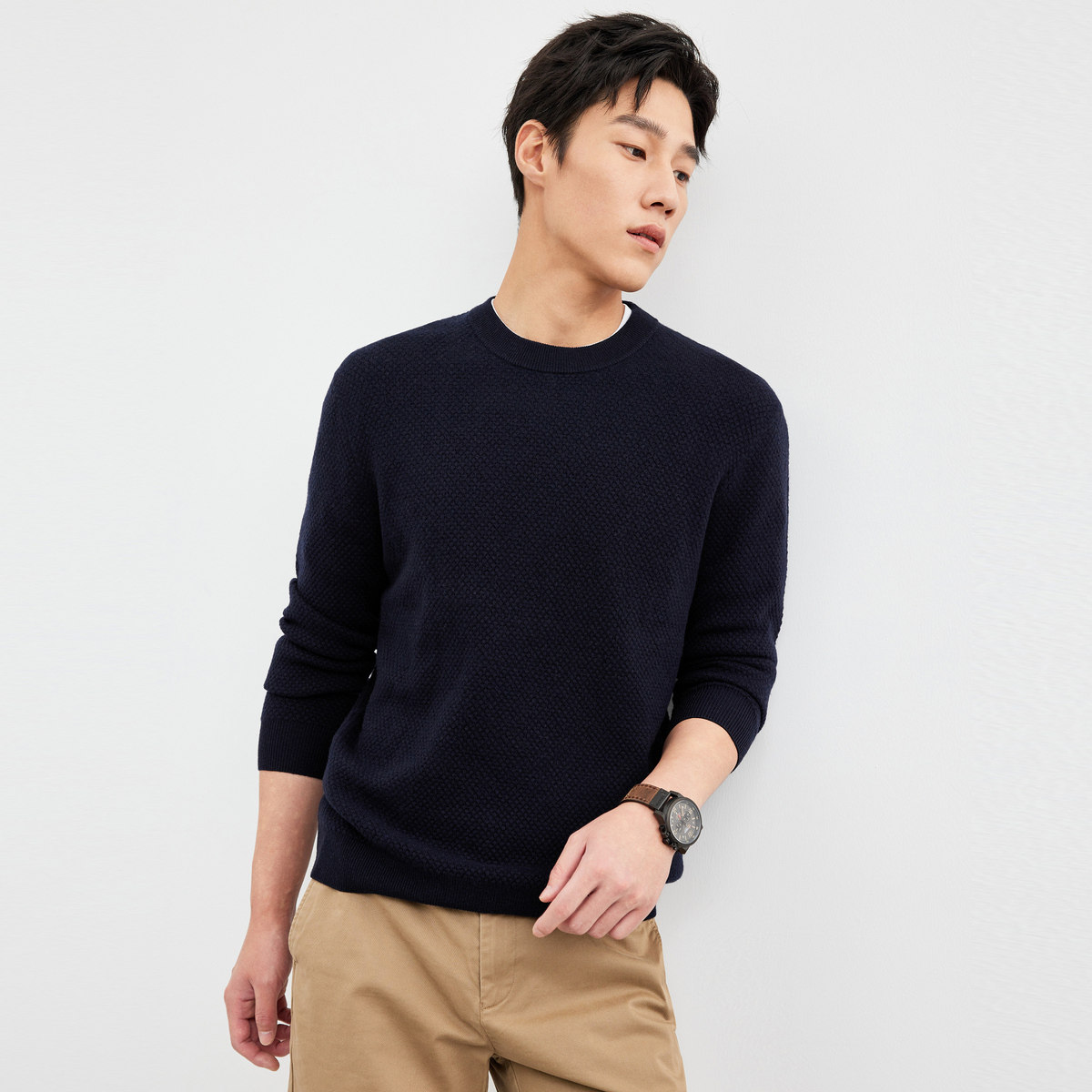 七匹狼官方正品净色菠萝花厚毛衫商务休闲中青年新款针织衫羊毛衣