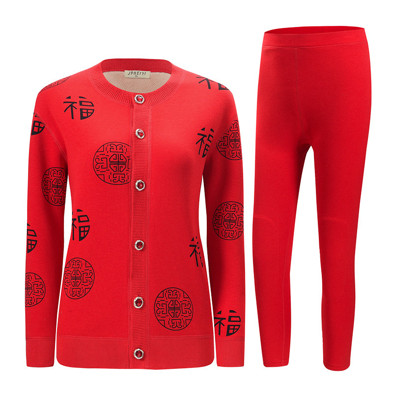 中老年红色加厚女保暖内衣