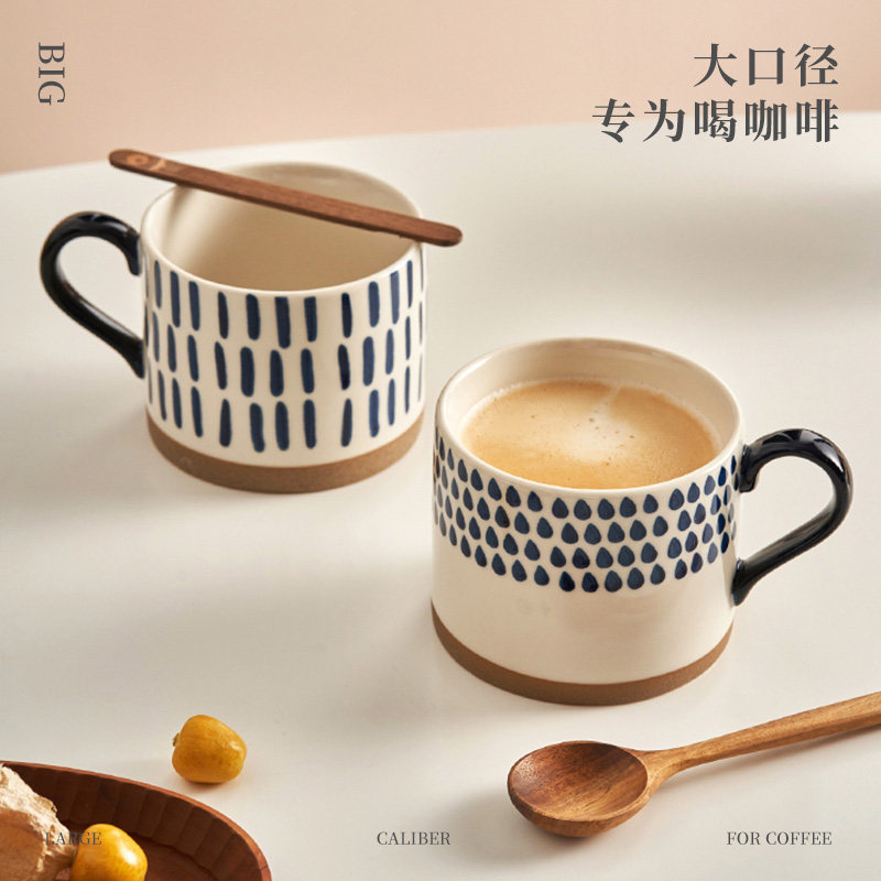 陶瓷咖啡杯大口径马克杯粗陶手绘