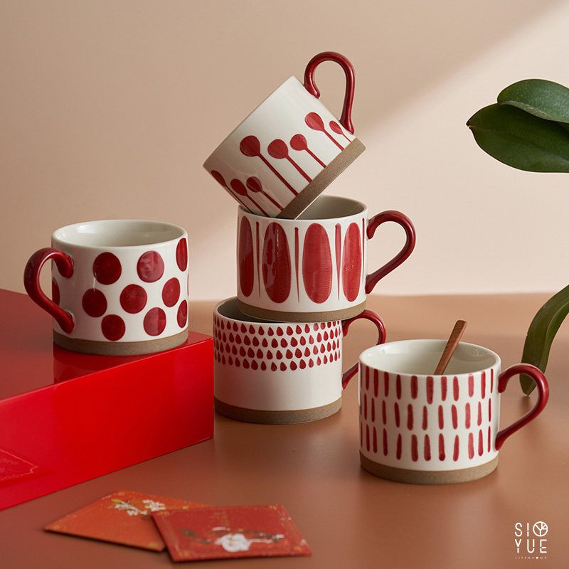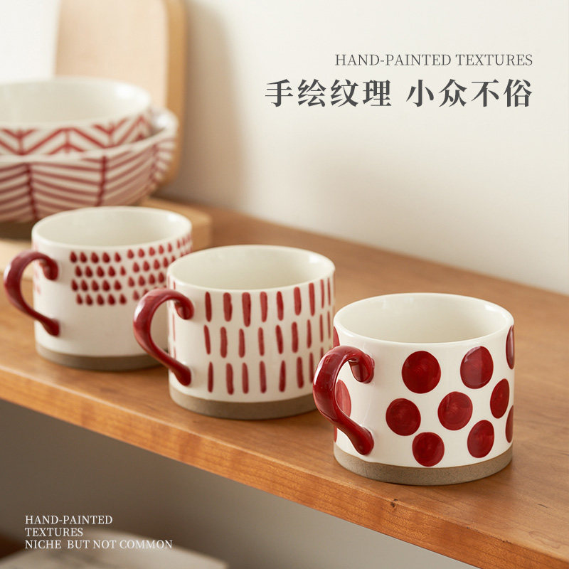 肆月日式手绘咖啡杯艺术感粗陶马克杯复古杯子办公室下午茶高颜值
