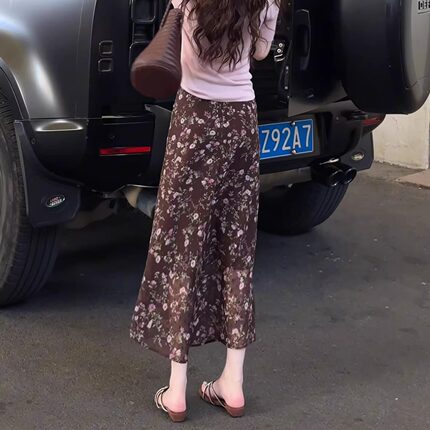 复古高级感碎花雪纺半身裙女夏薄款2025新款气质高腰显瘦百搭长裙