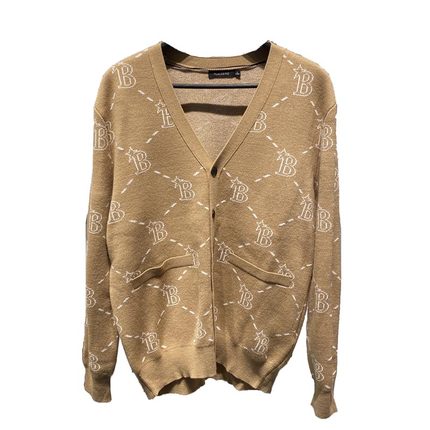 B1EAC3228 太平鸟男装2022秋装新款时尚卡其色字母满印百搭毛开衫