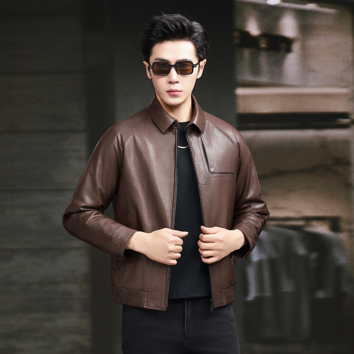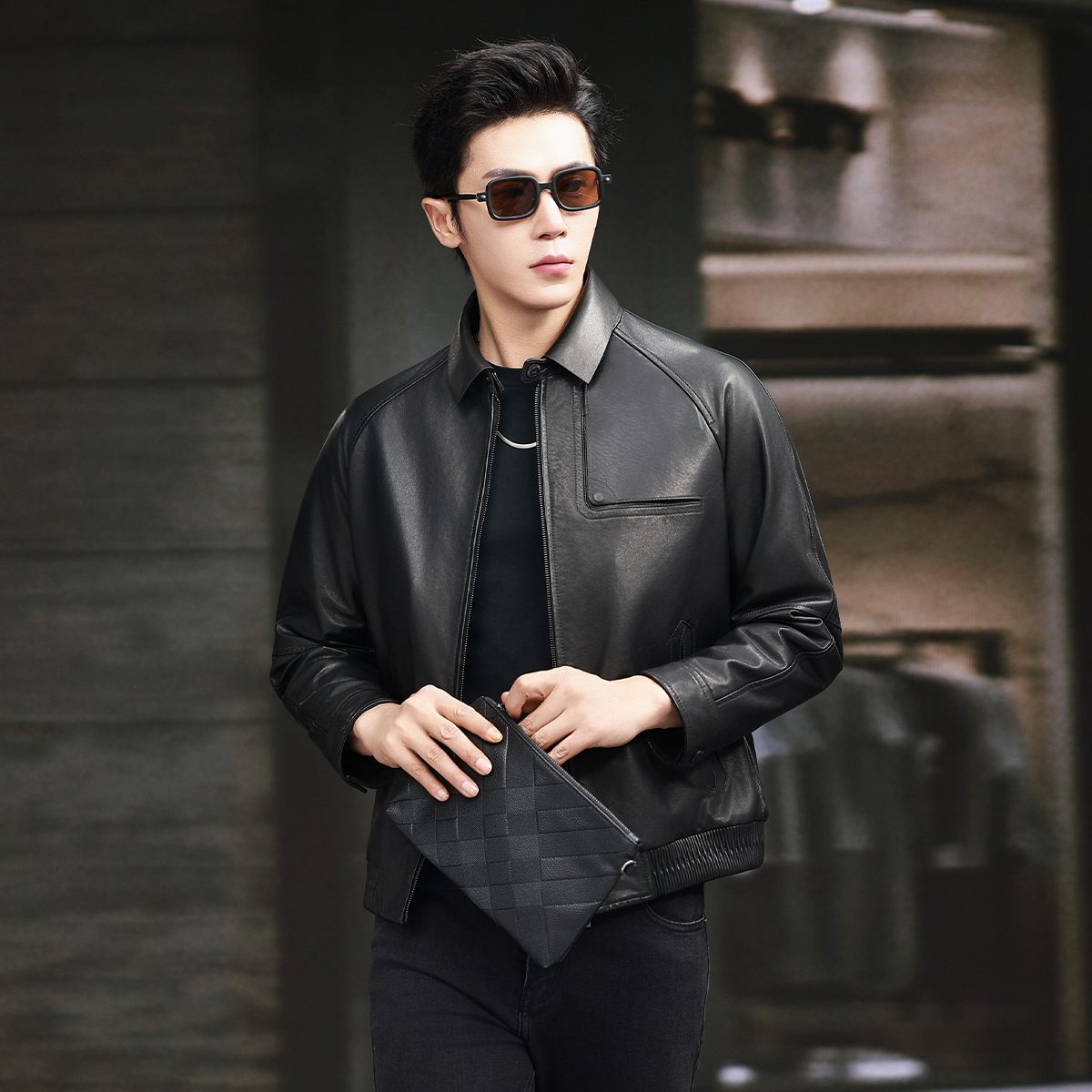 新款真皮皮衣男短款可拆卸翻领绵羊皮夹克时尚秋季机车服立领外套