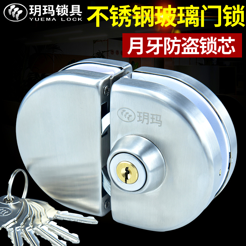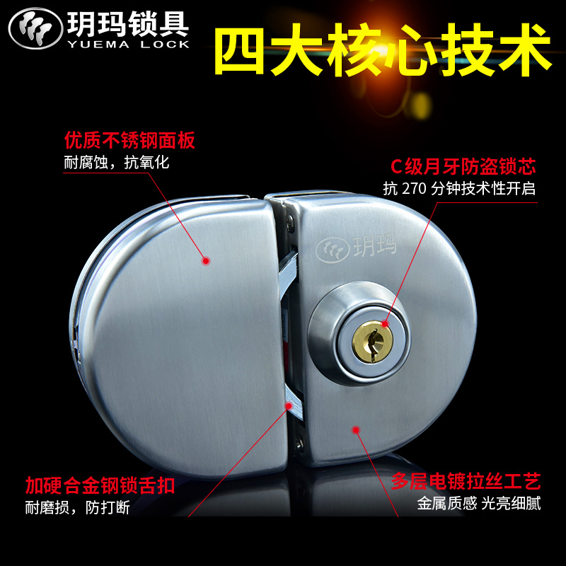 玥玛玻璃门锁防盗推拉玻璃锁双门免钻孔不锈钢店铺门单门双门锁