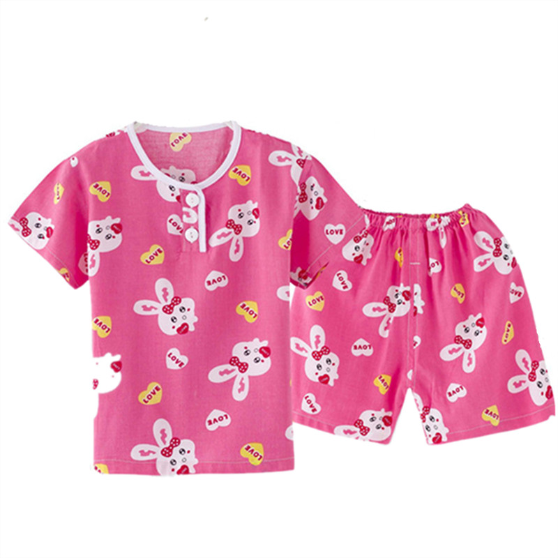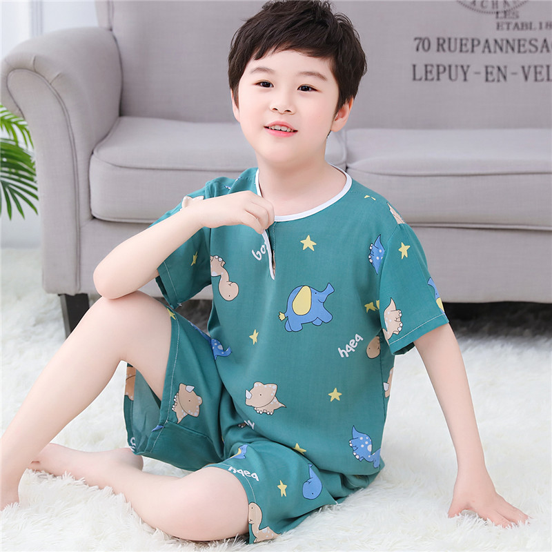 短袖男童小男孩棉绸儿童睡衣套装 超薄夏女宝宝绵绸人造棉家居服