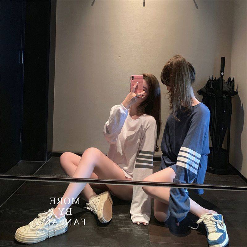 条纹撞色防晒衫罩衫女夏季新款韩版宽松中长款显瘦薄款长袖T恤潮