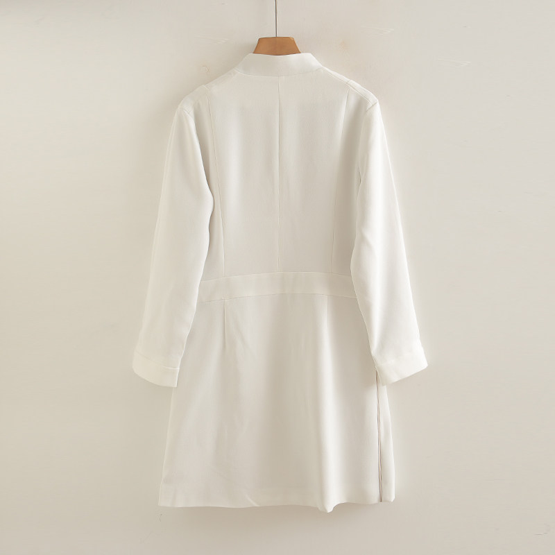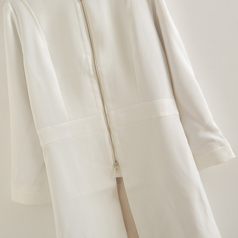 立领前拉锁设计修身显瘦连衣裙春秋新款OL外套职业气质中长款风衣