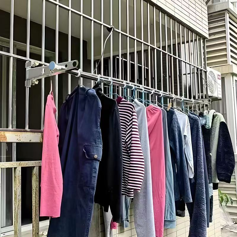 防盗网晾衣架窗户晾衣杆不锈钢阳台窗外免打孔单杆式窗框晒被家用